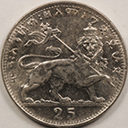 | FC | 31009 | EE1923 (1930-1931) | ETHIOPIA | 25 Matonas | Crowned Lion | Haile Selassie I | Nickel | 30 | Extremely Fine | $5.00 | ||||