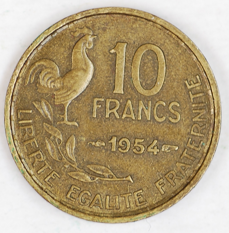 | FC | 16931 | 1954 | FRANCE | 10 Francs | Head Left | Rooster | Aluminum-Bronze | 915.1 | Extremely Fine | $30.00 | ||||