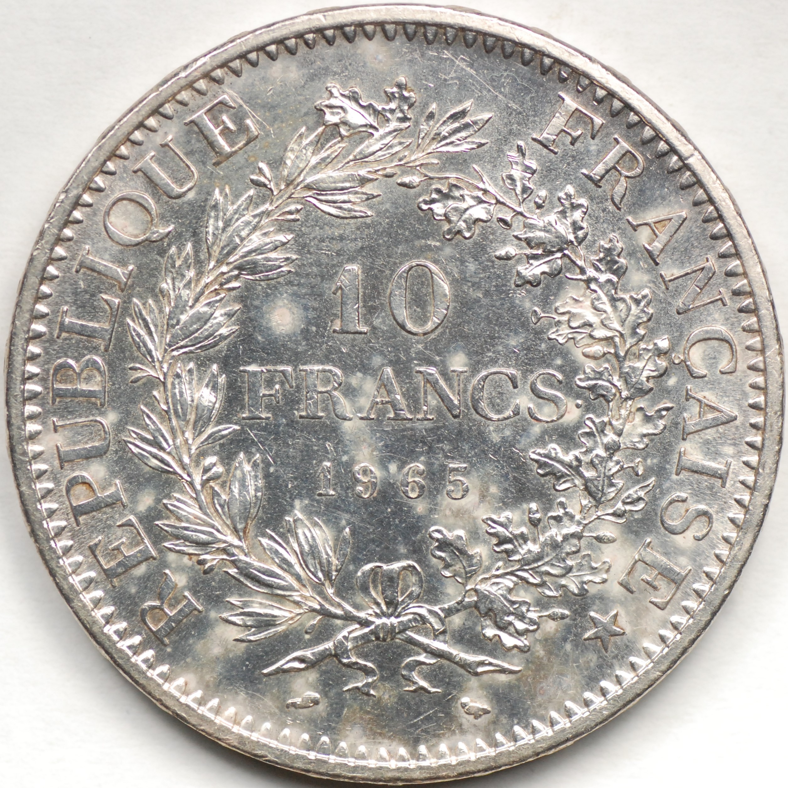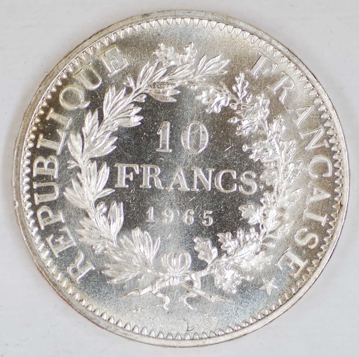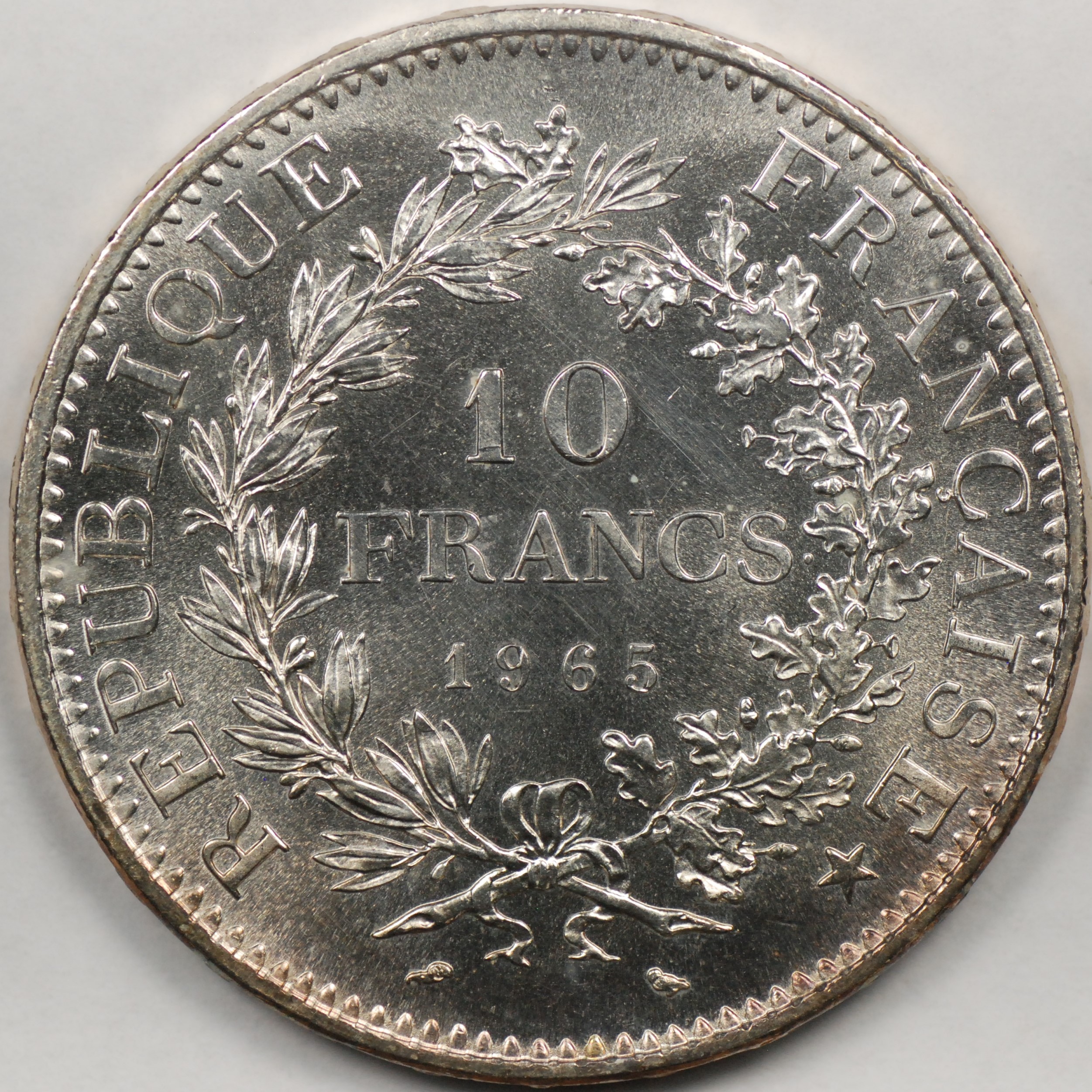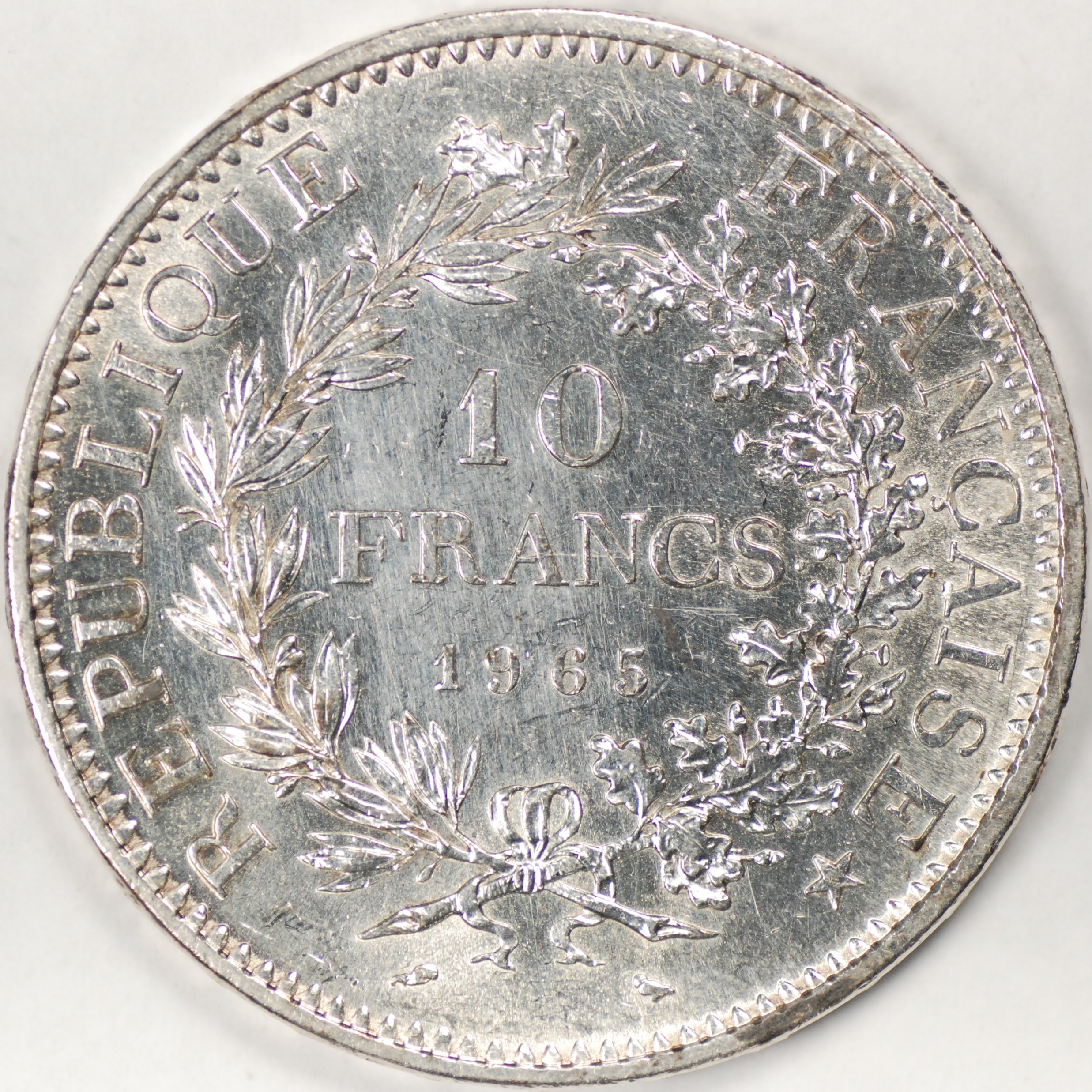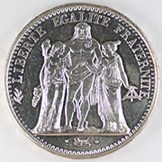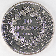 FC | 38997 | 1965 | FRANCE | 10 Francs | Hercules Group | Wreath | 0.900 | 0.7234 | Silver | 932 | Bril. Uncirculated | $30.00 |