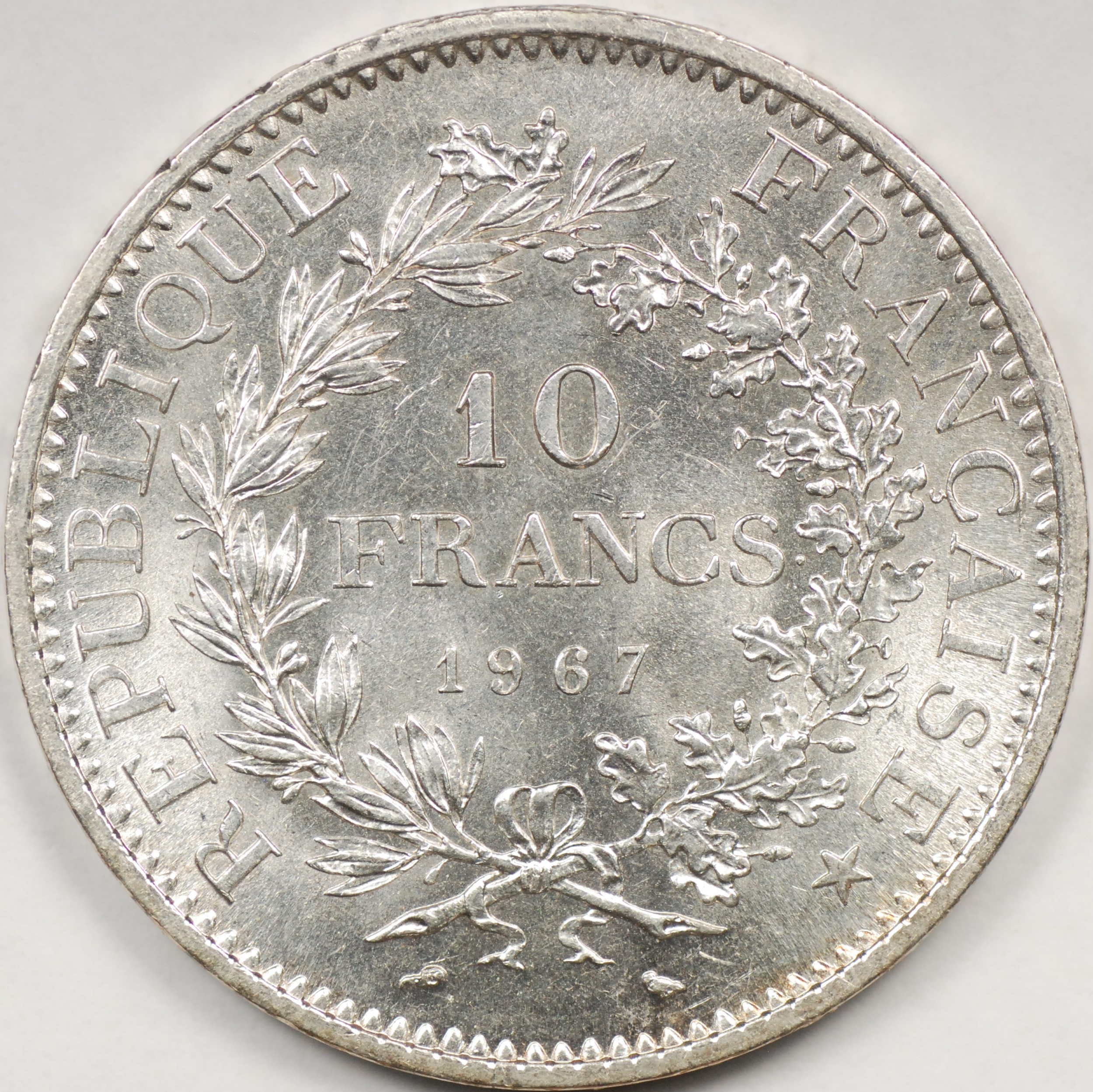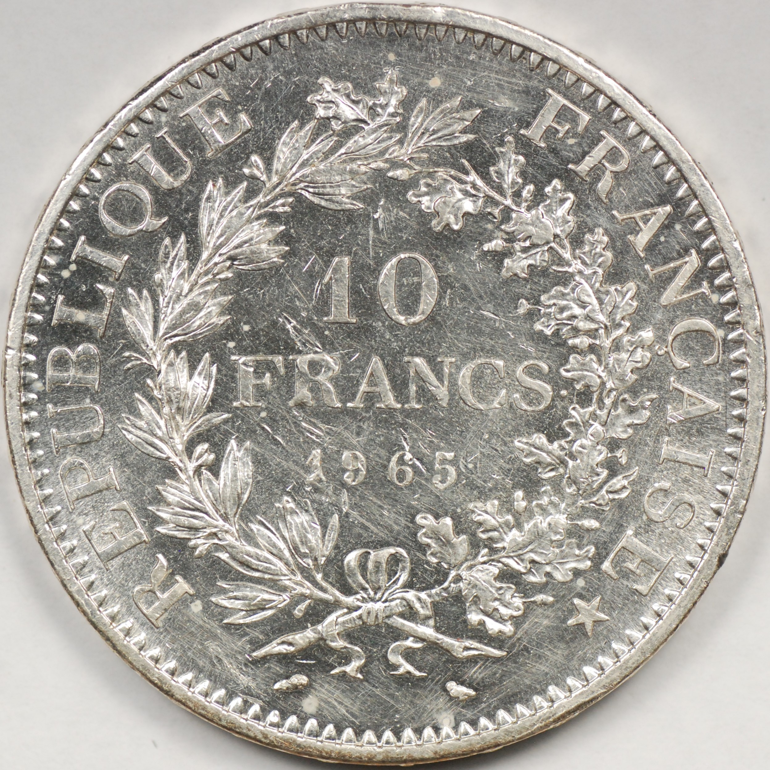 | FC | 28154 | 1965 | FRANCE | 10 Francs | Hercules Group | Value within Wreath | 0.900 | 0.7234 | Silver | 932 | Uncirculated | $17.50 | ||