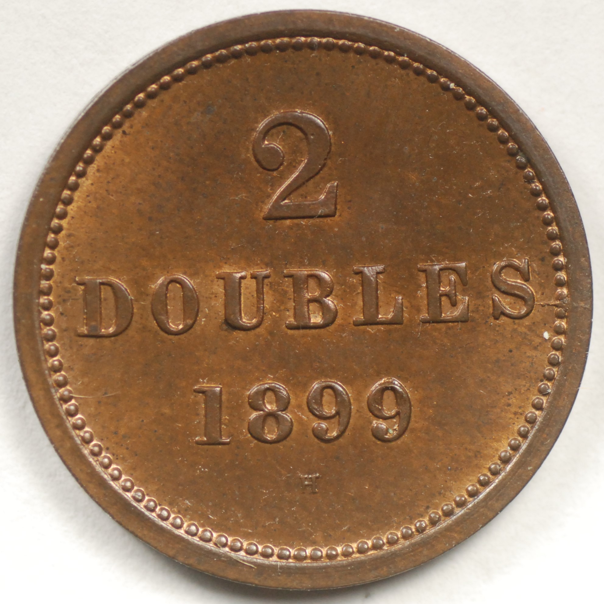 | FC | 19178 | 1899-H | GUERNSEY | 2 Doubles | National Arms | Bronze | 9 | Red Choice Uncirculated | $30.00 | |||||||