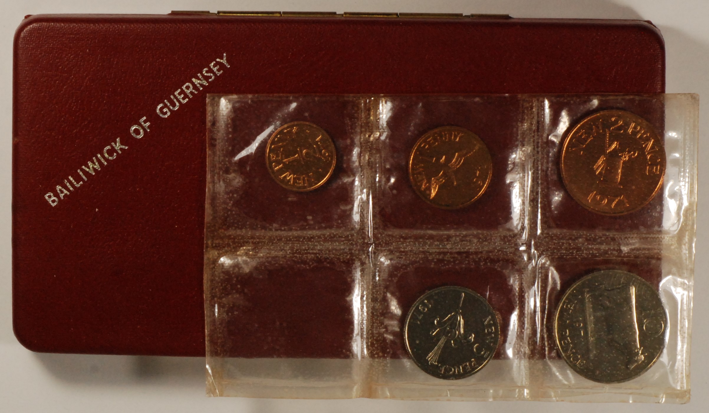 FCS | 32350 | 1971 | GUERNSEY | 5 Coin Proof Set | (Missing 1 Coin) | In Original Packaging | Mixed | Proof Set | $12.00 | |||||