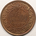 | FC | 33209 | 1939 | INDIA-BRITISH | 1/2 Pice | George VI, Value And Date Within Circle | Bronze | 528 | Extremely Fine | $5.00 | ||||||