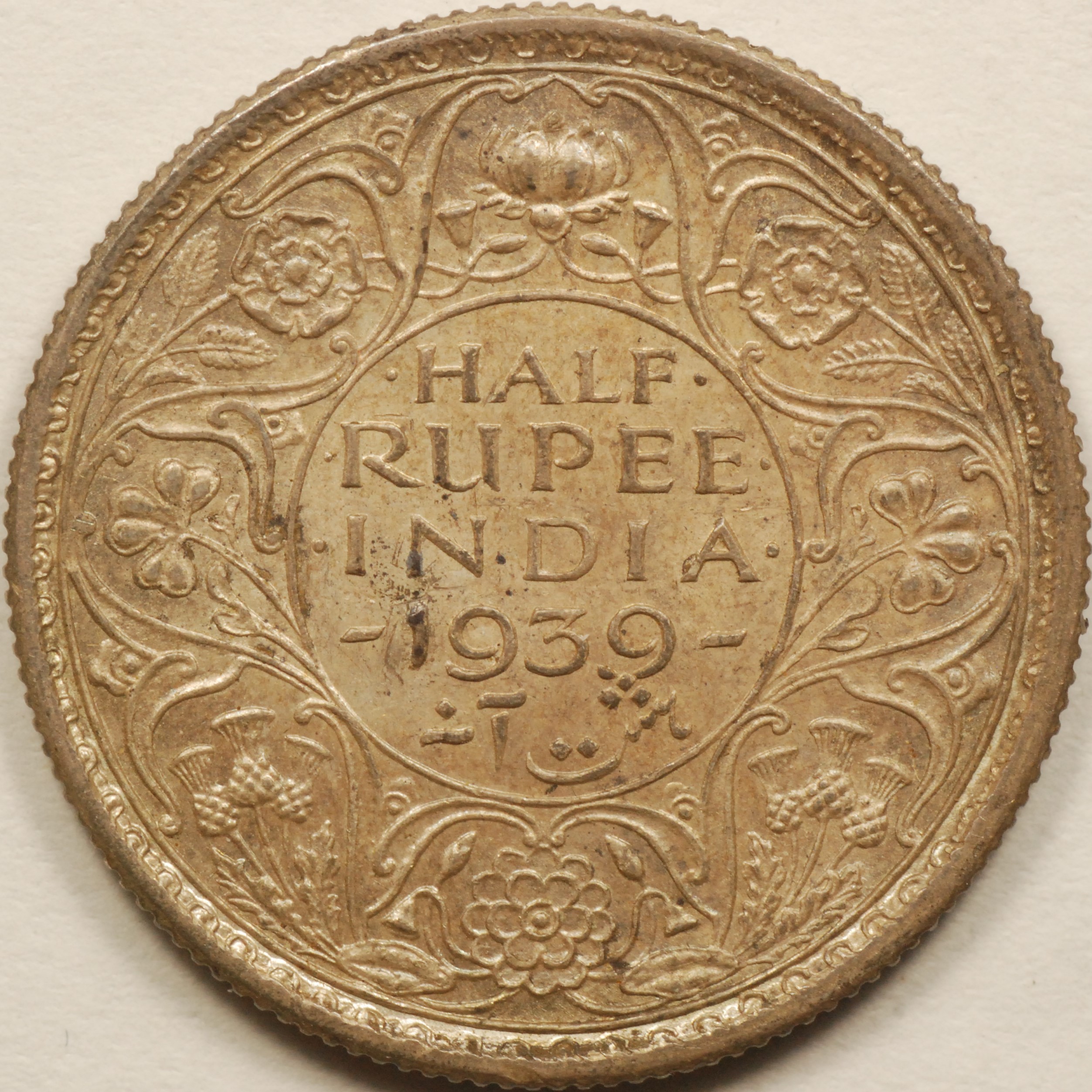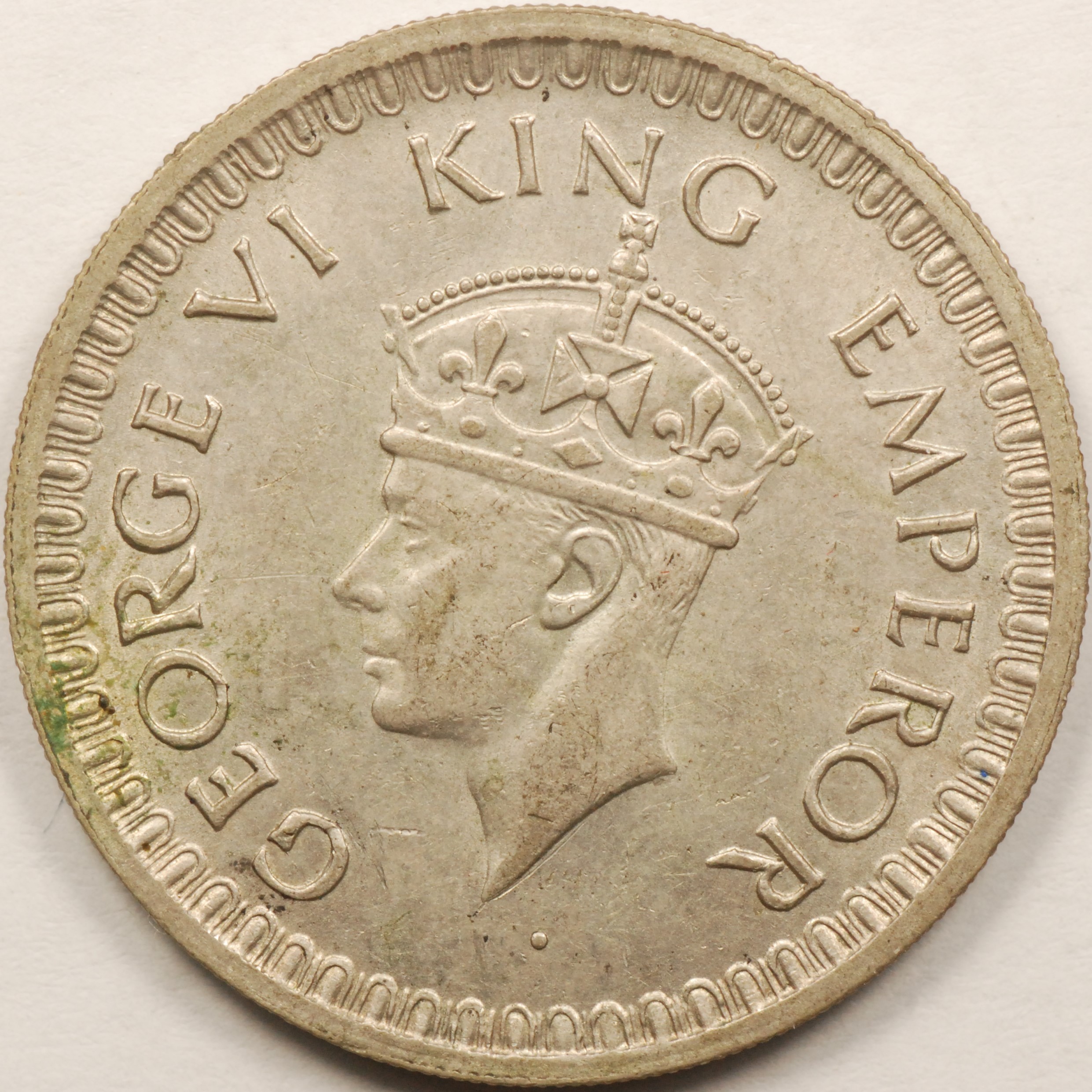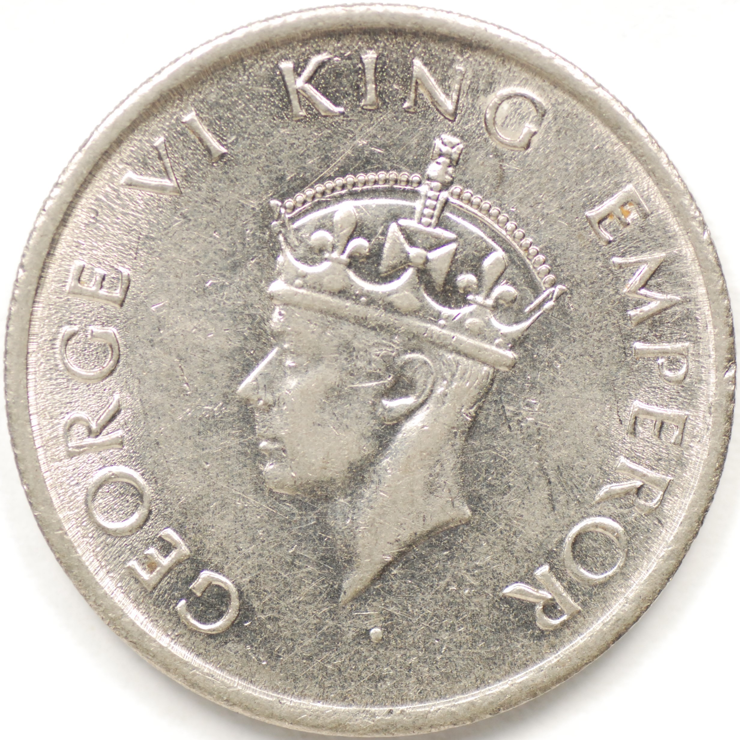 | FC | 19404 | 1942 | INDIA | 1/2 Rupee | George VI | Security Edge | 0.917 | 0.1708 | Silver | 552 | Uncirculated | $20.00 | ||