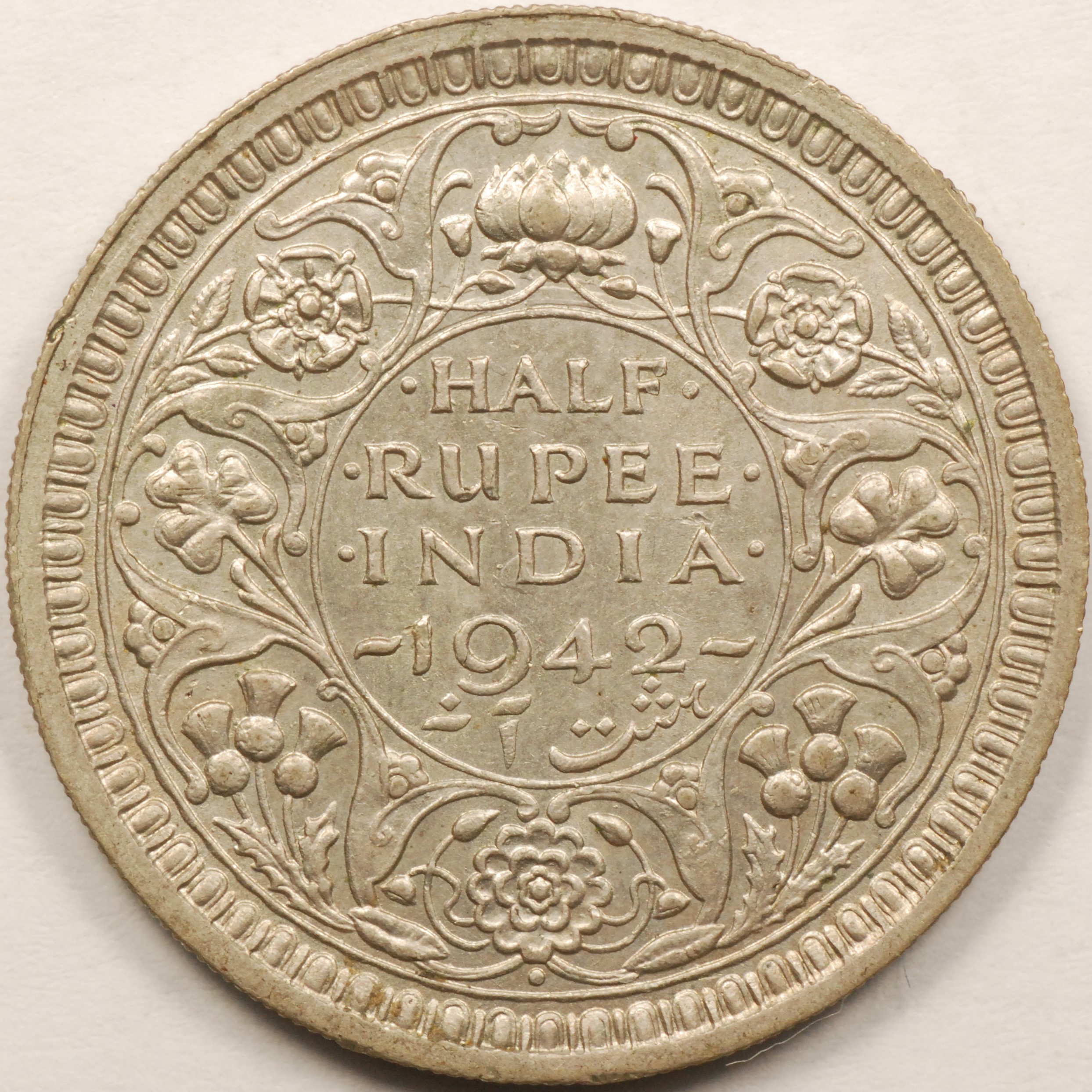 | FC | 19402 | 1942 | INDIA | 1/2 Rupee | George VI | Security Edge | 0.917 | 0.1708 | Silver | 552 | Uncirculated | $20.00 | ||