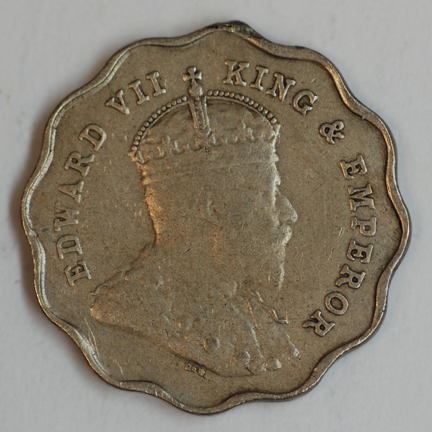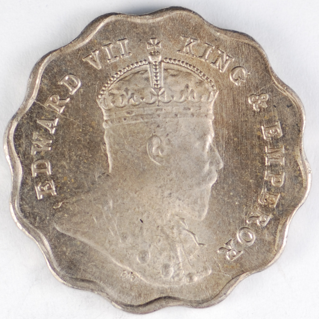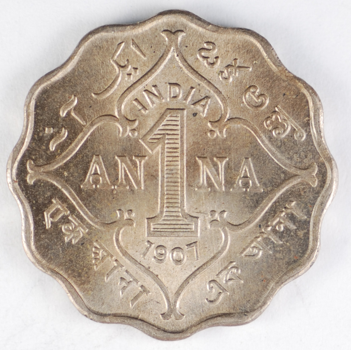FC | 39704 | 1907-B | INDIA | 1 Anna | Edward VII | Scalloped, Decorative Outline | Copper-Nickel | 504 | MS-63 | $250.00 | ||