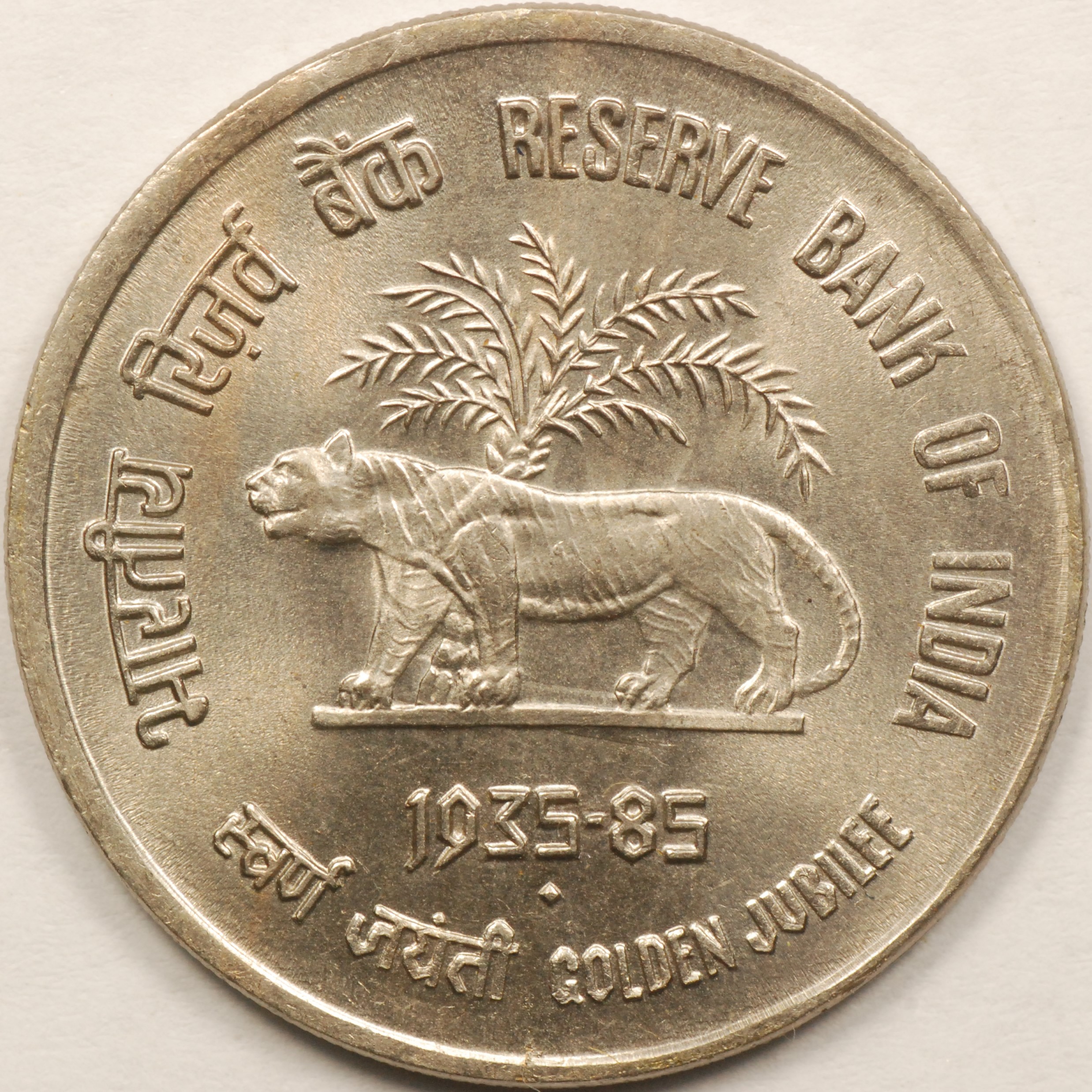 | FC | 29763 | 1985 | INDIA | 50 Paise | Lion Beneath Trees | Golden Jubilee of Reserve Bank of Jubilee | Copper-Nickel | 66 | Bril. Uncirculated | $10.00 | |||||