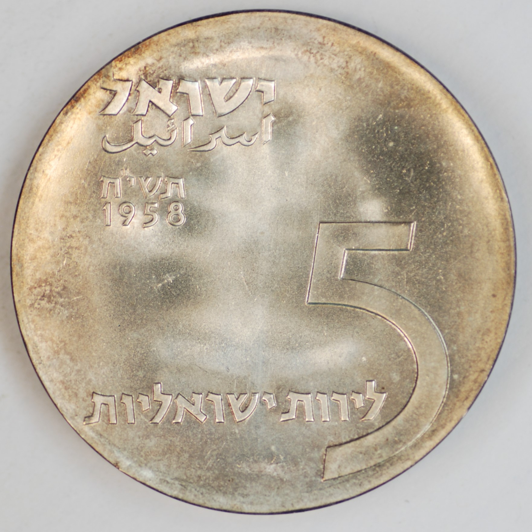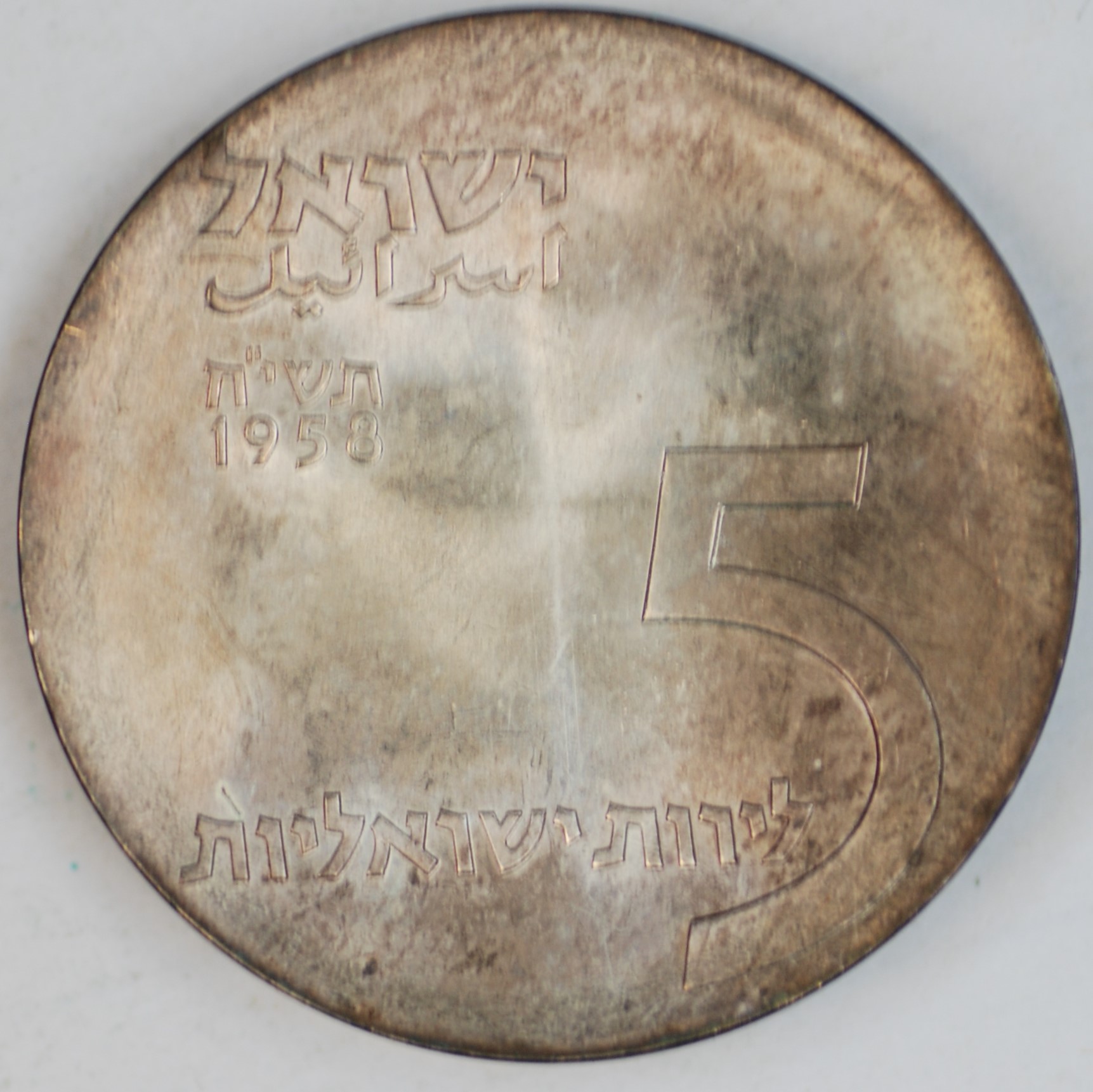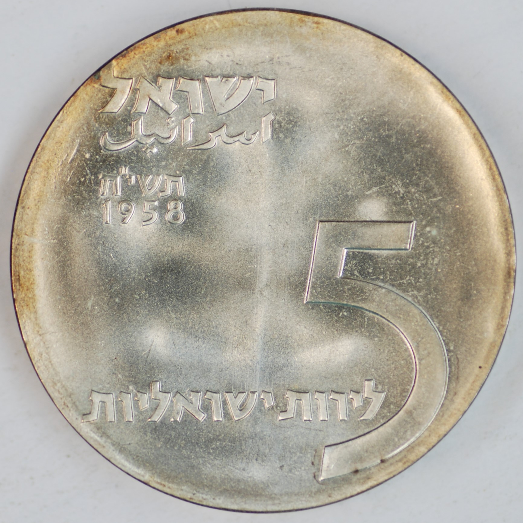 | FC | 36558 | 1958 | ISRAEL | 5 Lirot | Independence Day Menoray | 0.900 | 0.7234 | Silver | 21 |
