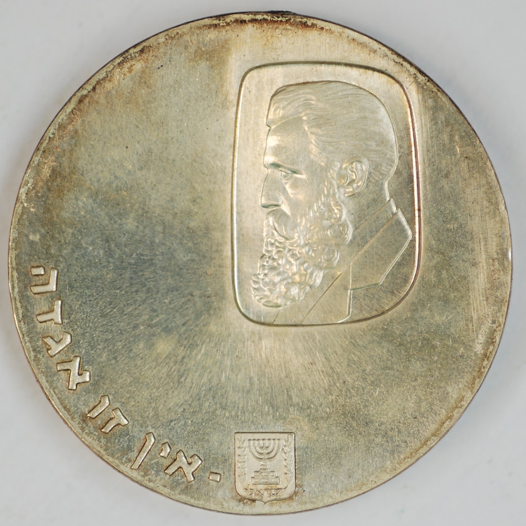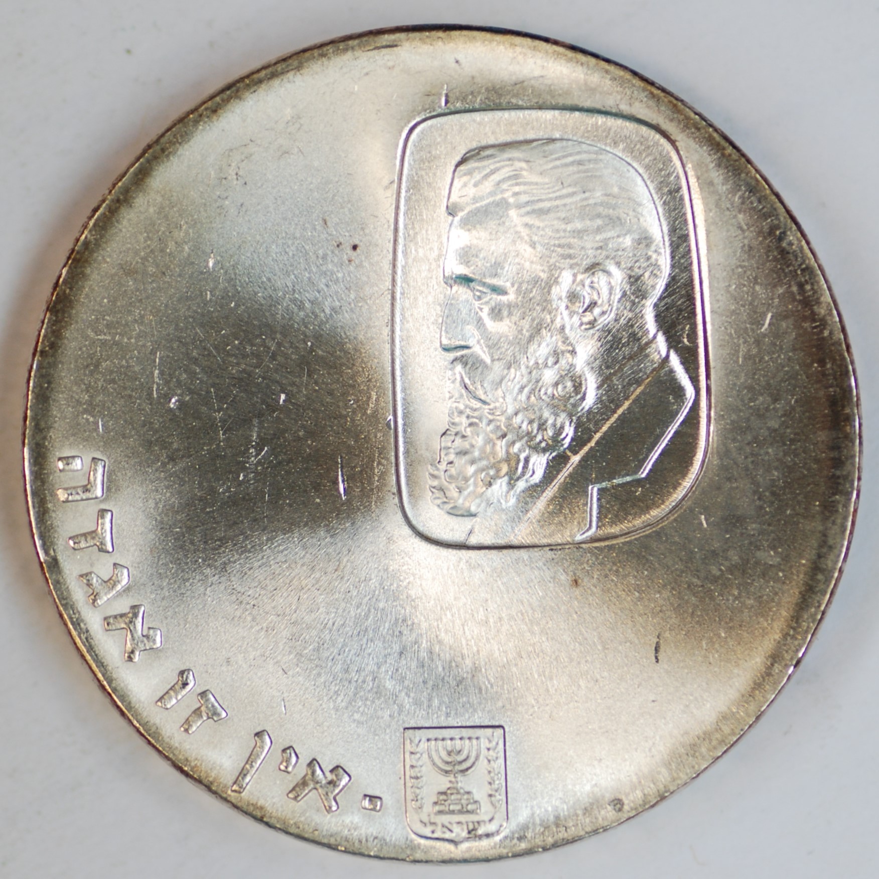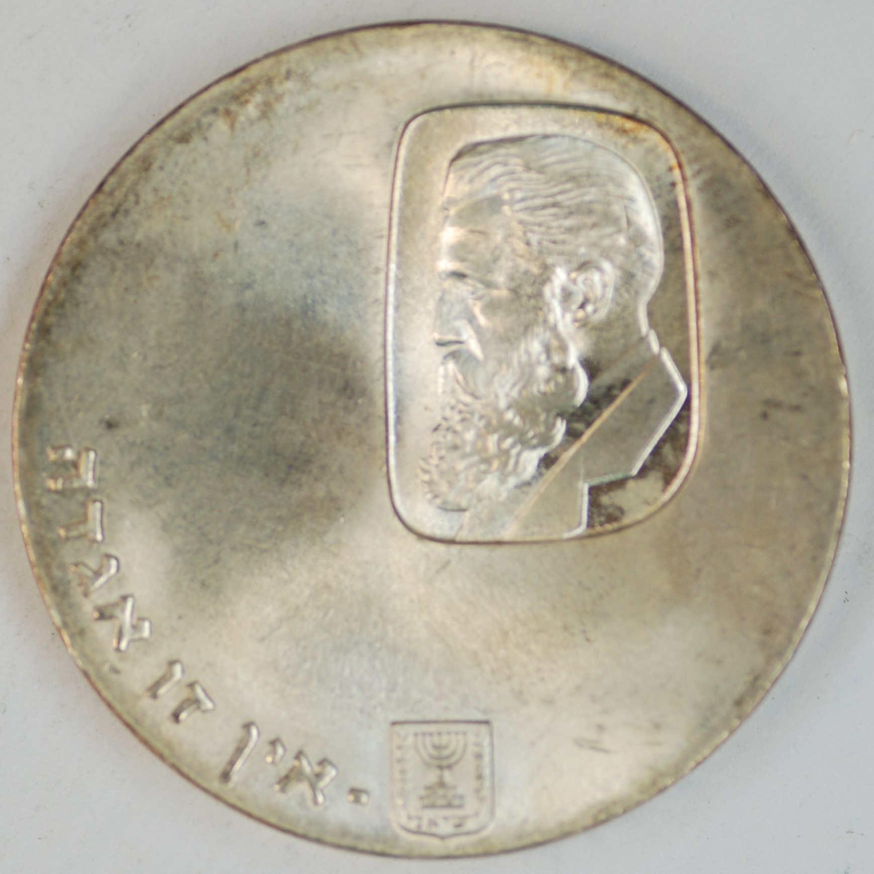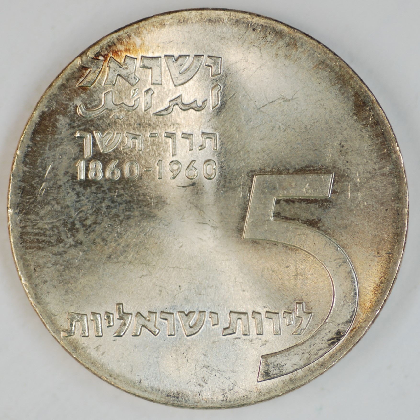 FC | 39707 | 1960 | ISRAEL | 5 Lirot | Independence Day | Theodore Herzl | 0.900 | 0.7234 | Silver | 29 | Bril. Uncirculated | $40.00 |