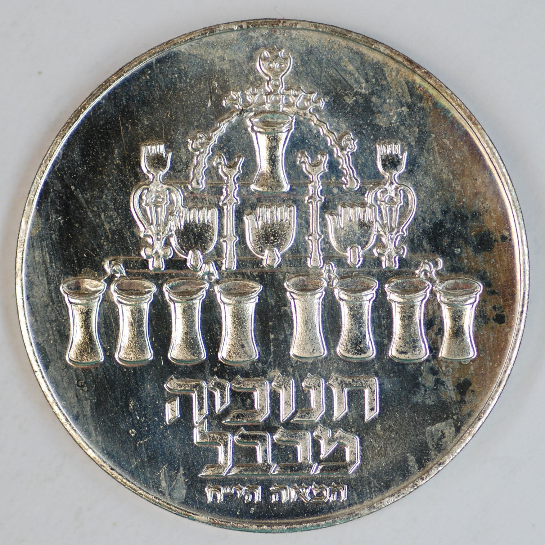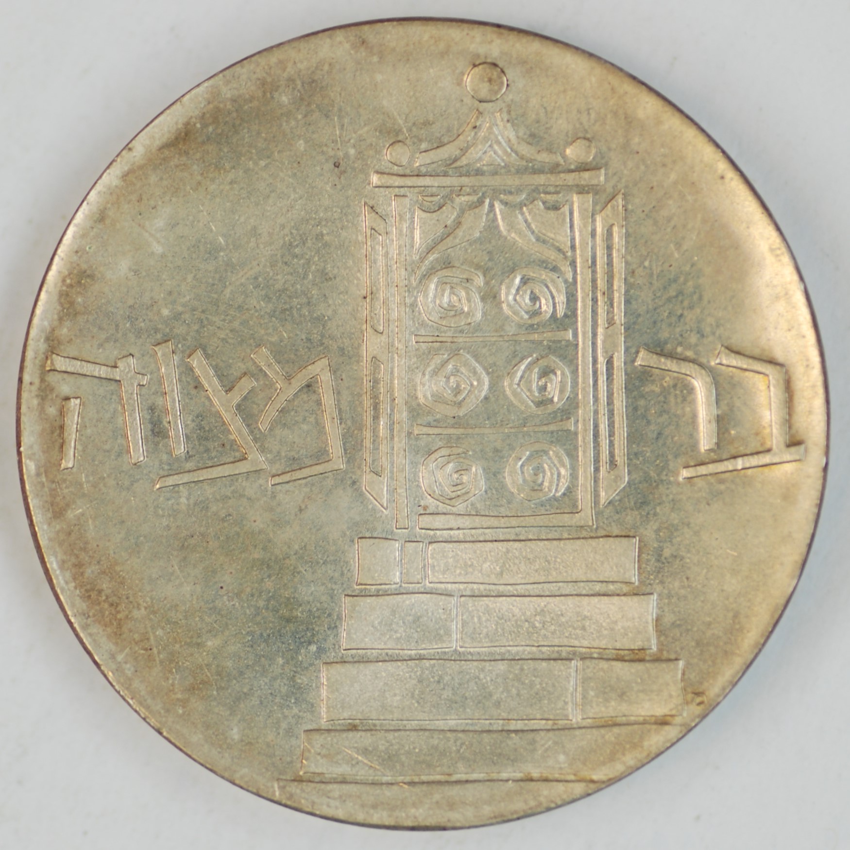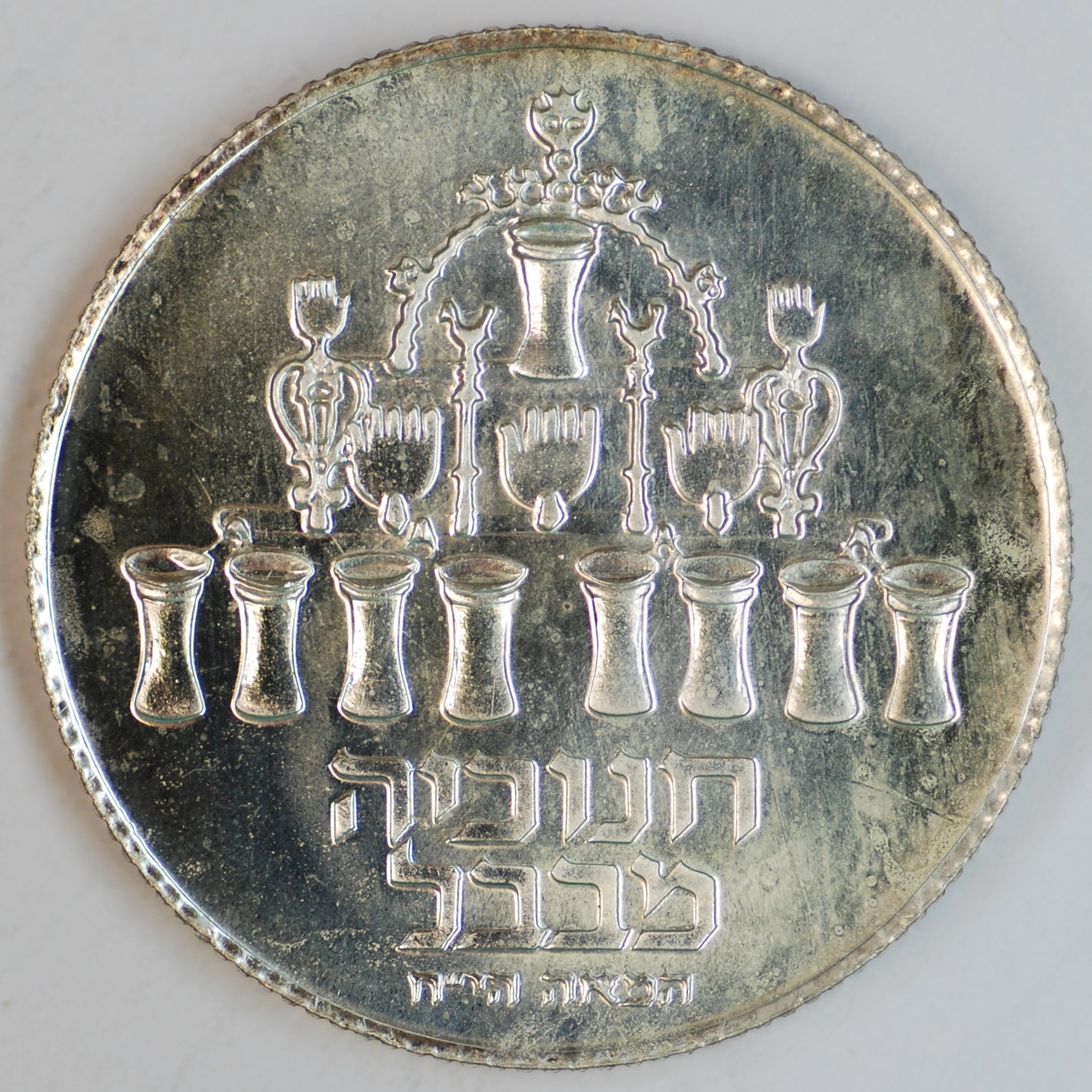 1958 | ISRAEL | 5 Lirot | KM #21 Menorah, Mintage 97,860 | 0.900 | 0.7234 | Silver | 21 | Bril. Uncirculated | $36.00 | |||