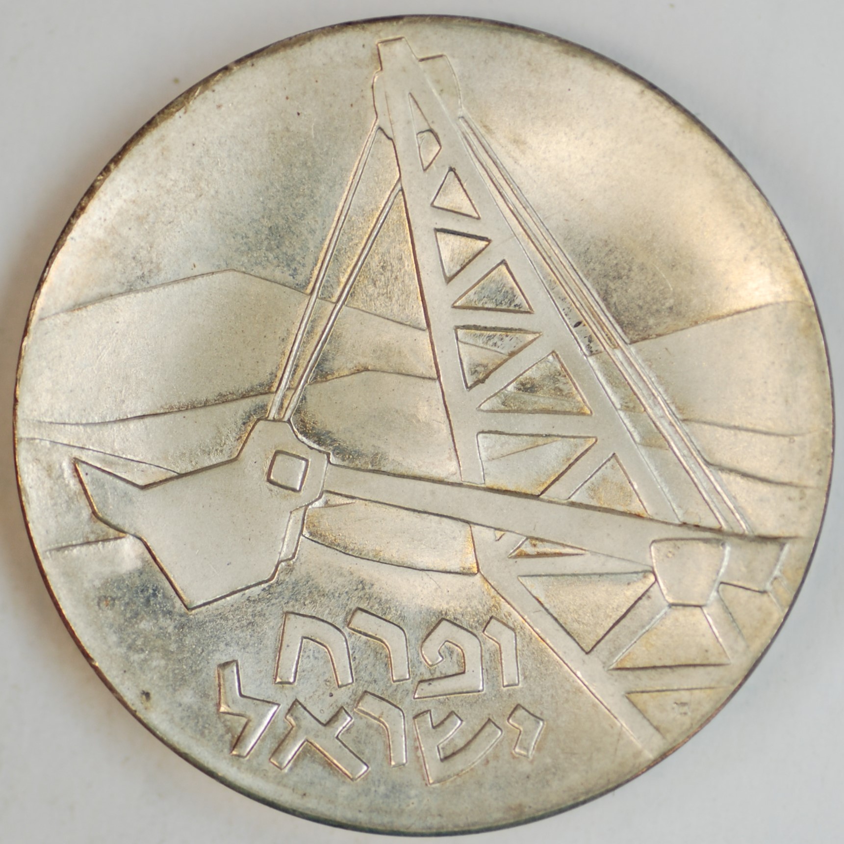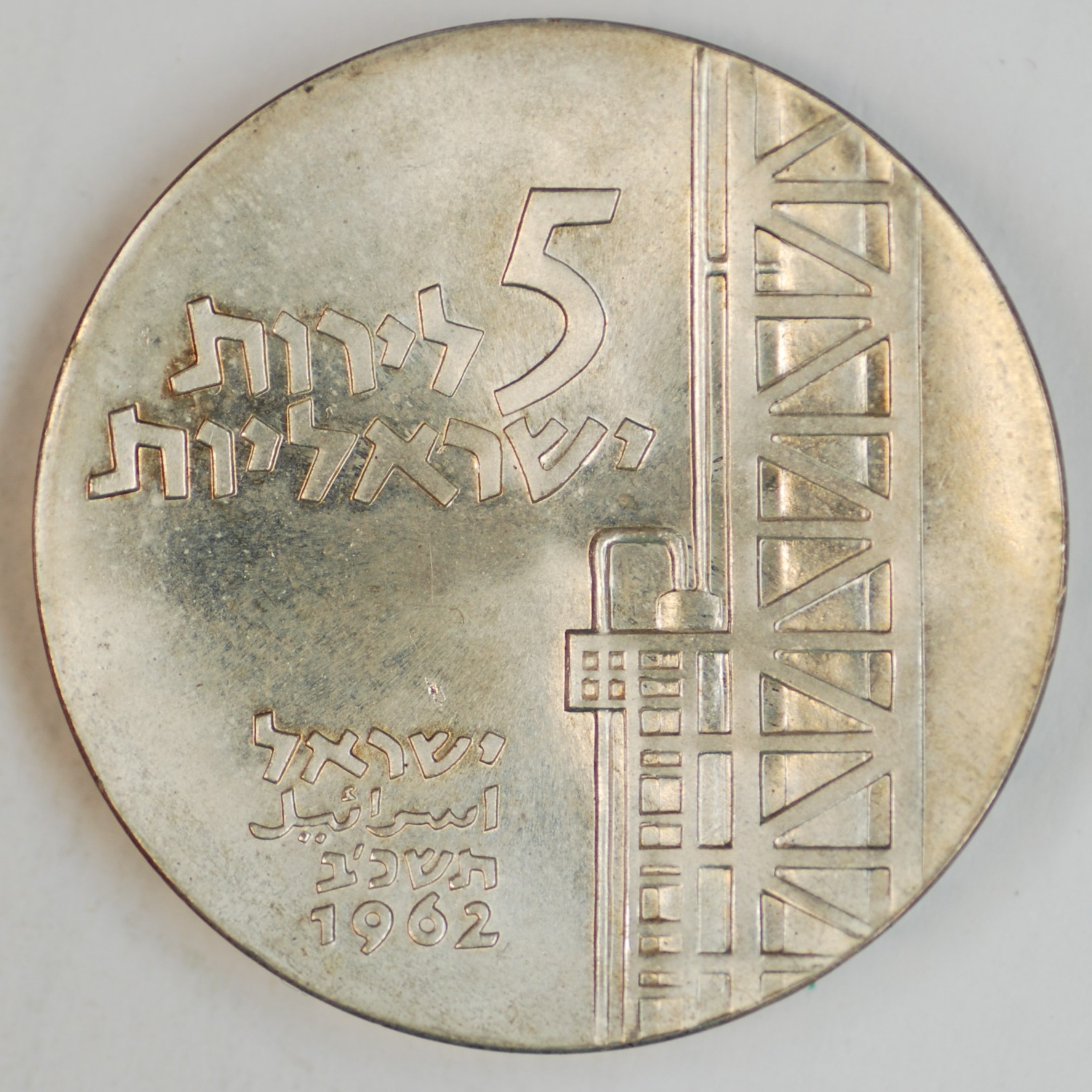 | FC | 7171 | 1962 | ISRAEL | 5 Lirot | KM #35 Negev Industrialization | 0.900 | 0.7234 | Silver | 35 | Bril. Uncirculated | $40.00 | |||