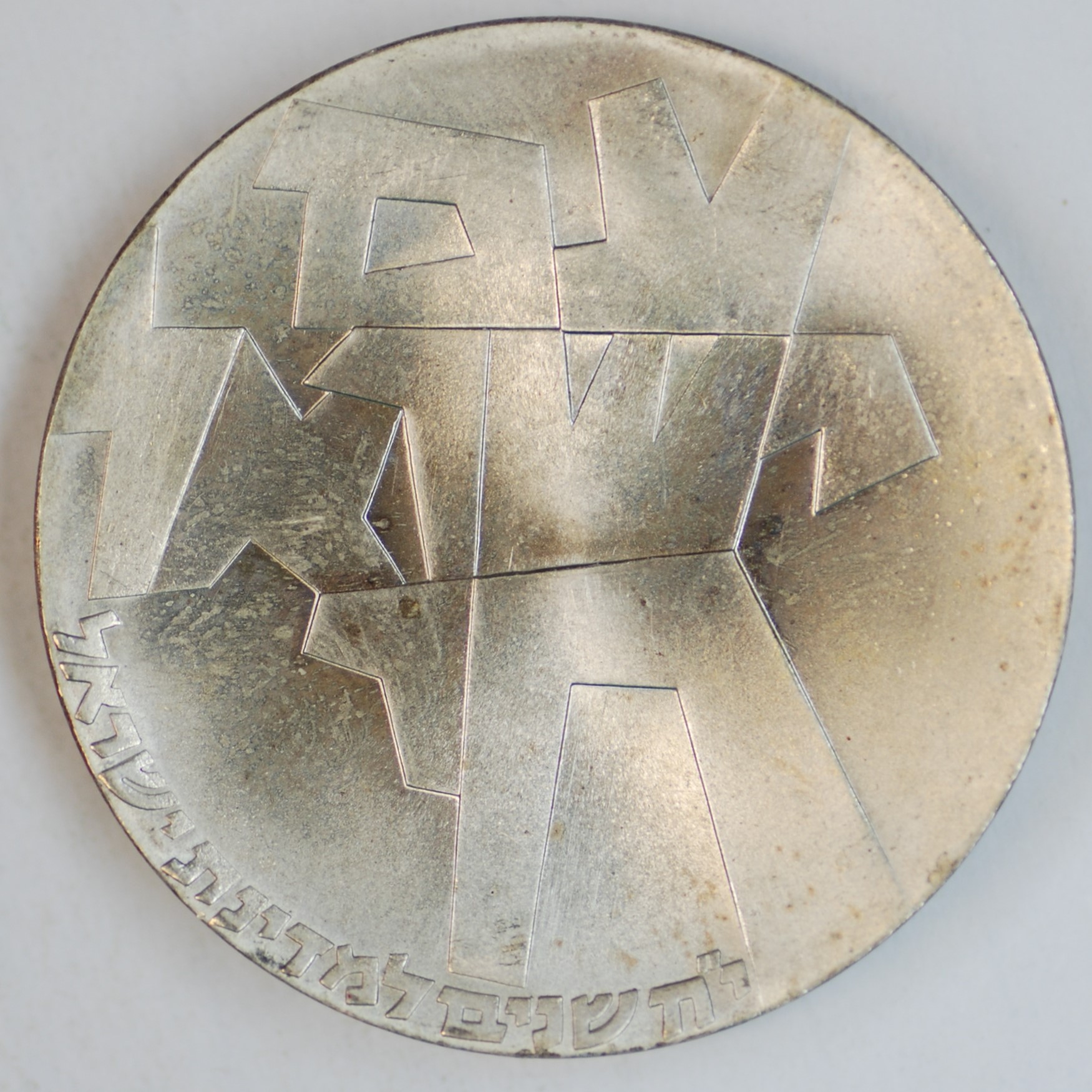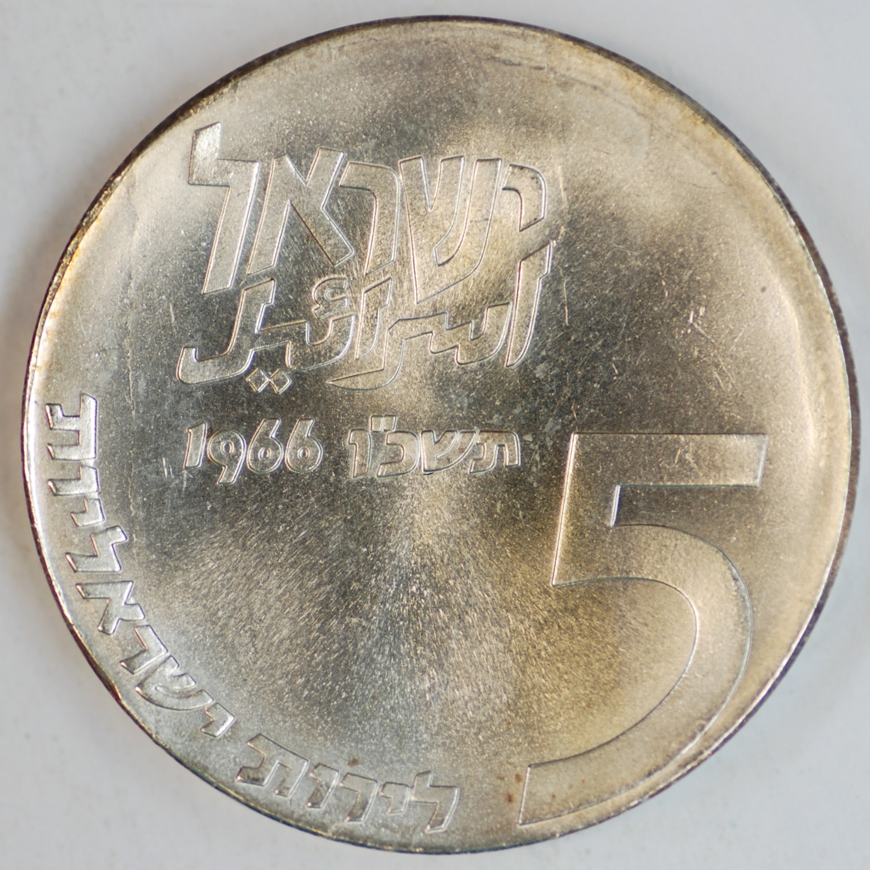 | FC | 7182 | 1966 | ISRAEL | 5 Lirot | KM #46 Abstract Design | 0.900 | 0.7234 | Silver | 46 | Uncirculated | $36.00 | |||