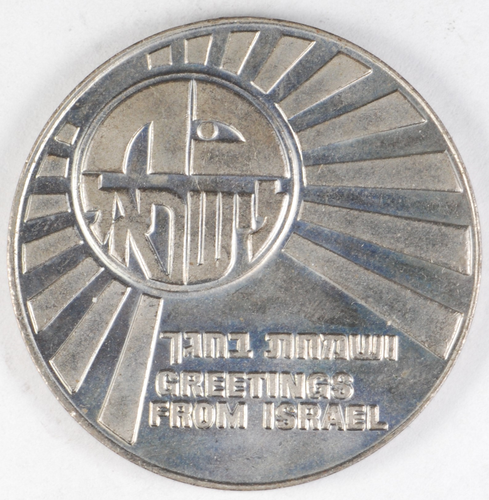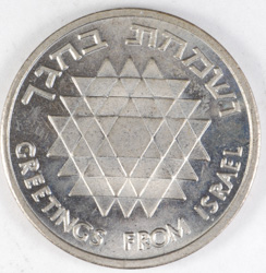 | FC | 35675 | 1977 | ISRAEL | Medal | Israel Govt Coins and Medals Association | Greetings From Israel | Copper-Nickel | Uncirculated | $3.00 | ||||||