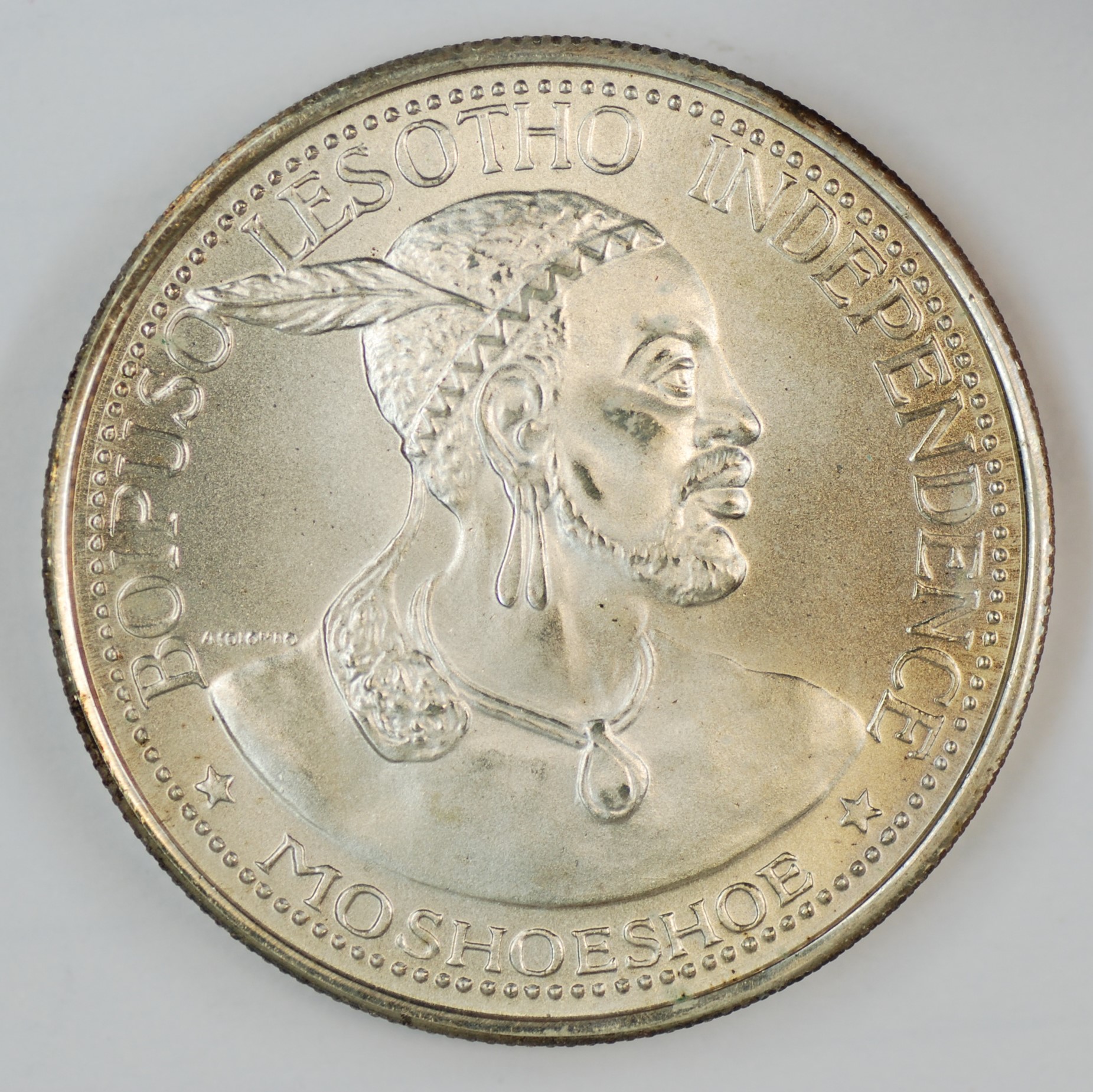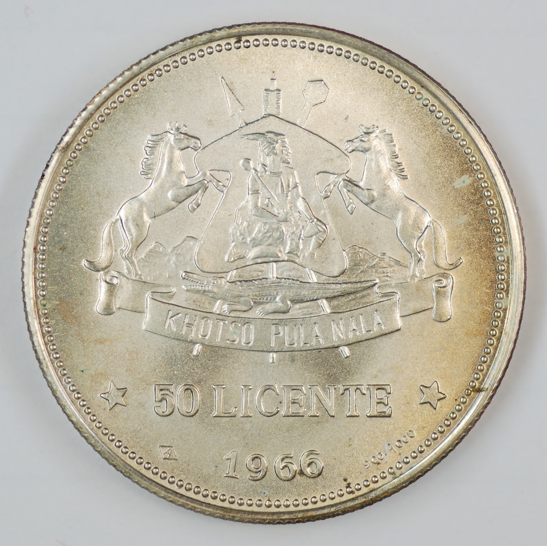 | FC | 24987 | 1966 | LESOTHO | 50 Licente | Native Bust Right | Moshoeshoe II | 0.900 | 0.8131 | Silver | 4.1 | Bril. Uncirculated | $20.00 | |||