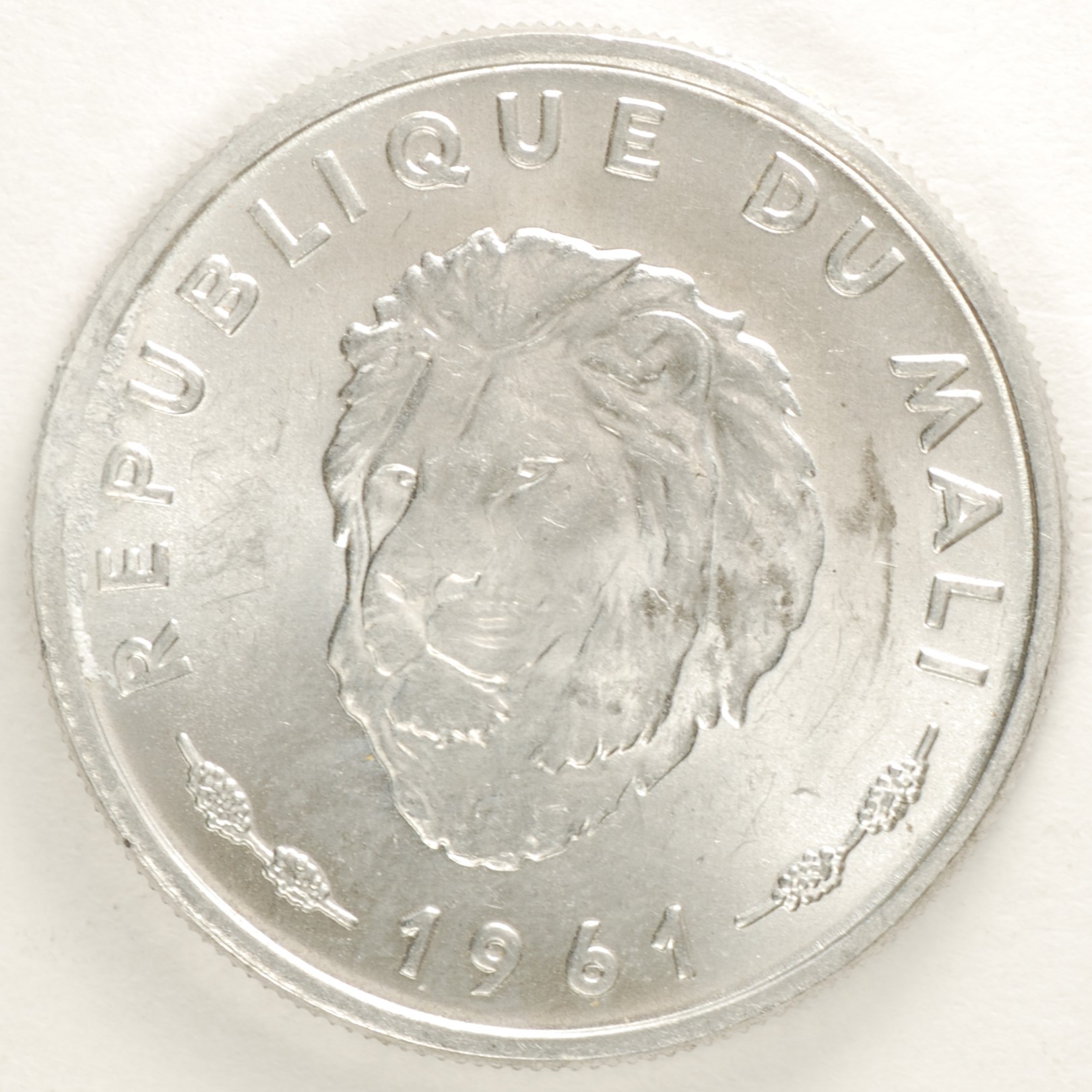 1961 | MALI | 25 Francs | Lion's Head | Aluminum | 4 | Bril. Uncirculated | $10.00