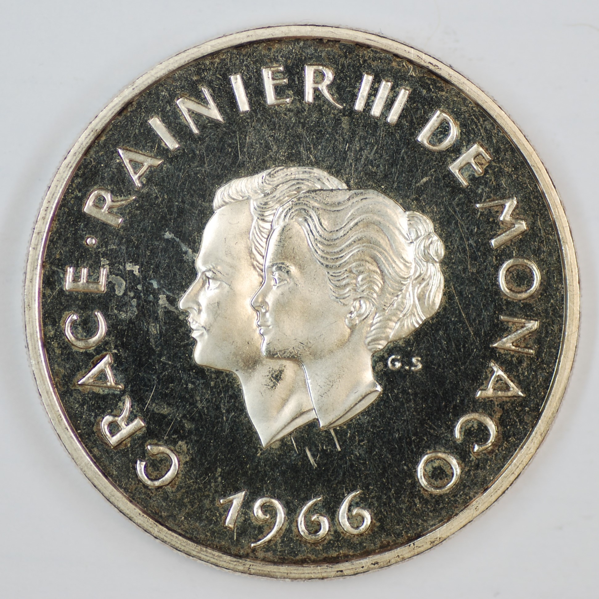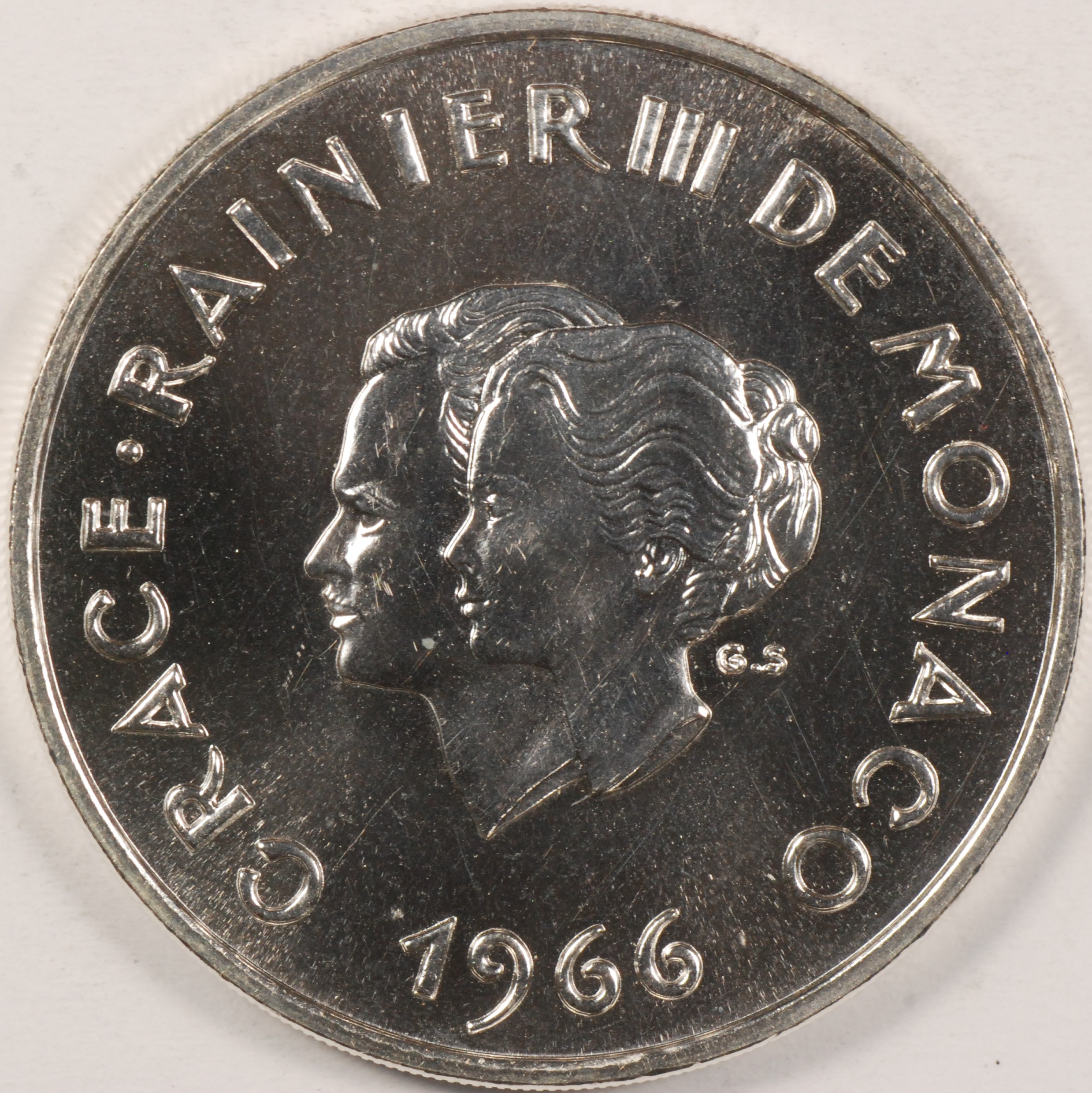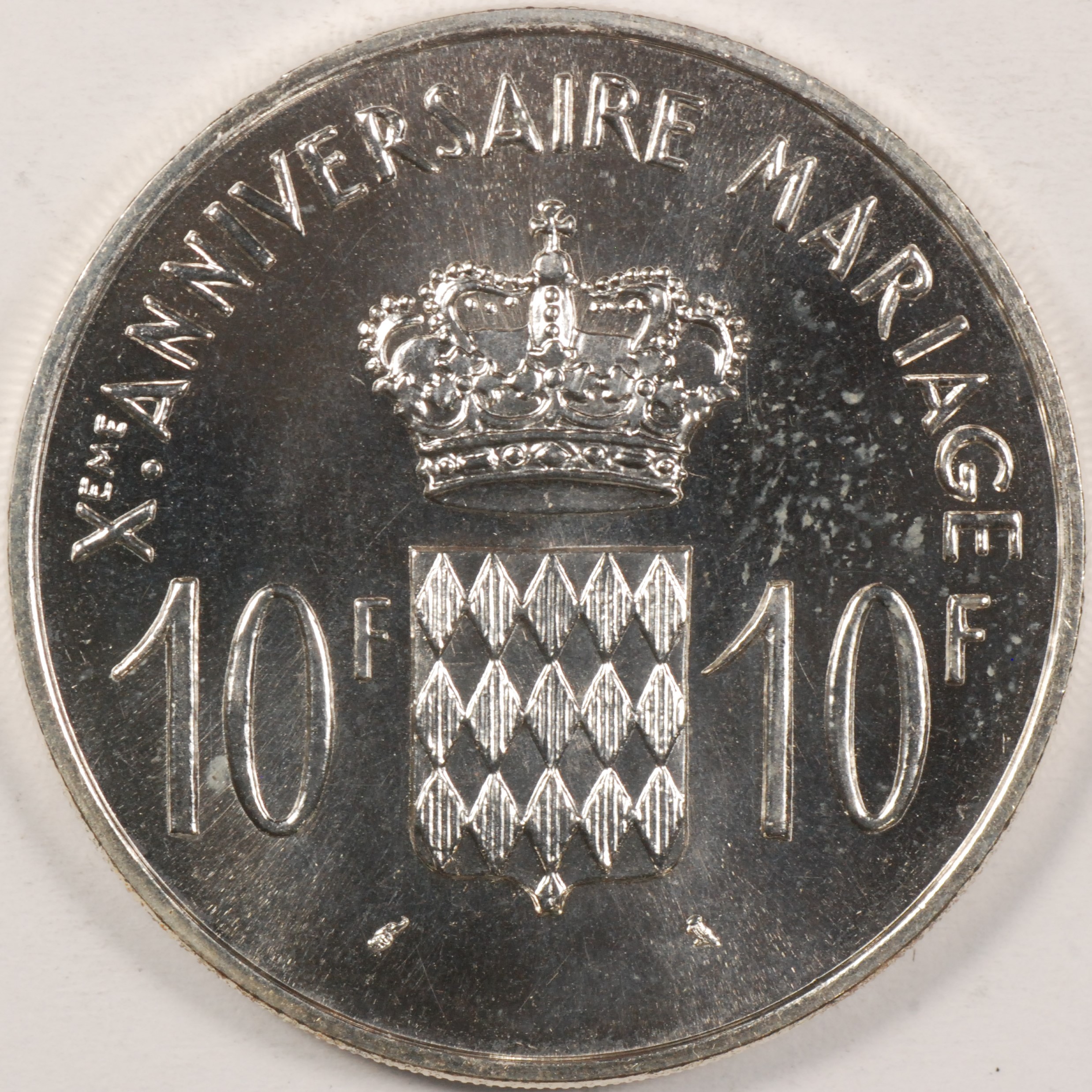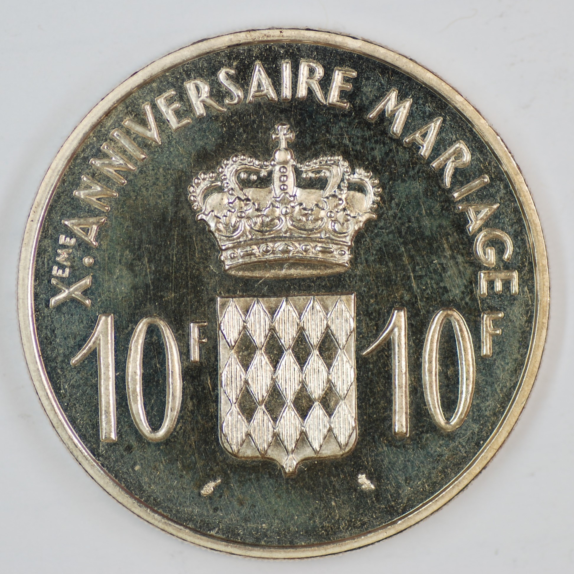 | FC | 33107 | 1966 | MONACO | 10 Francs | 10th Wedding Anniversary | Crowned Shield | 0.90 | 0.7234 | Silver | Proof | $120.00 | |||