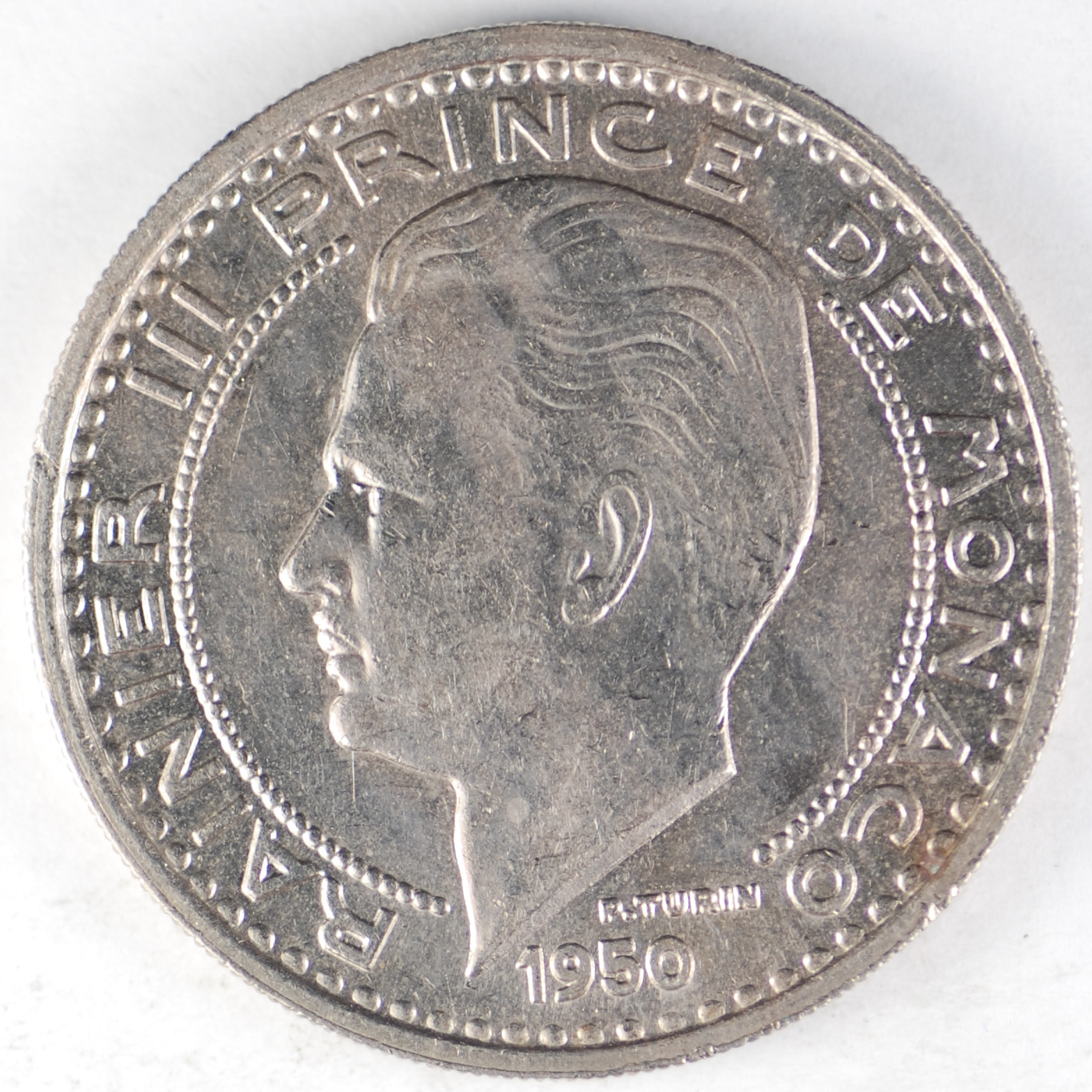1950 | MONACO | 20 Francs | Rainier III | Aluminum-Bronze | 131 | Extremely Fine | $2.50