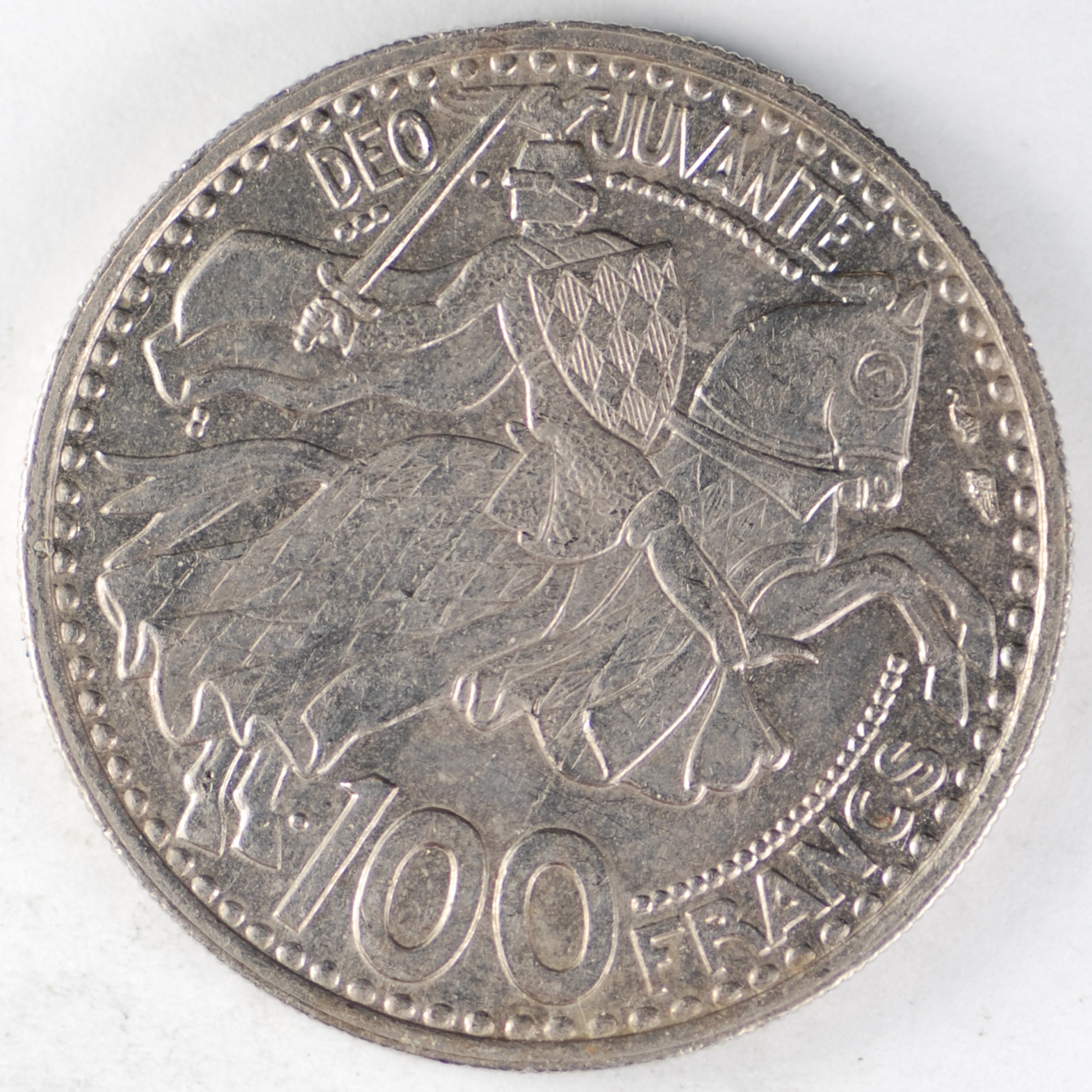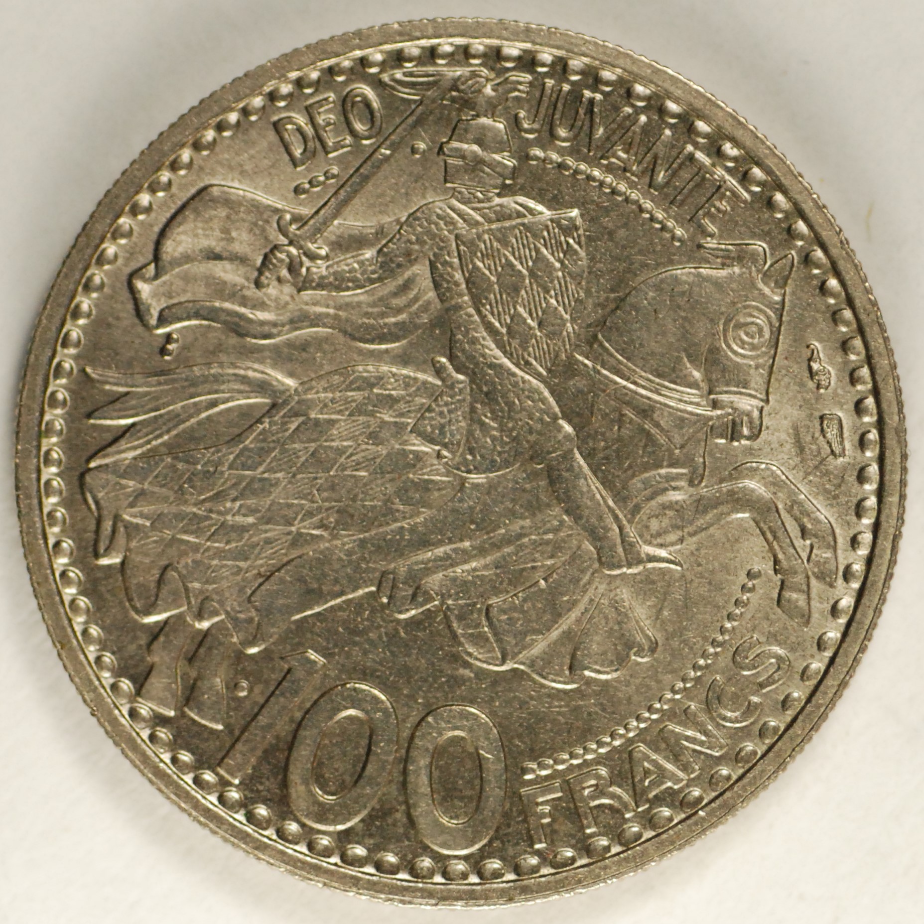 | FC | 33291 | 1950 | MONACO | 100 Francs | Rainier III | Armed Equestrian | Copper-Nickel | 133 | Uncirculated | $30.00 | ||||