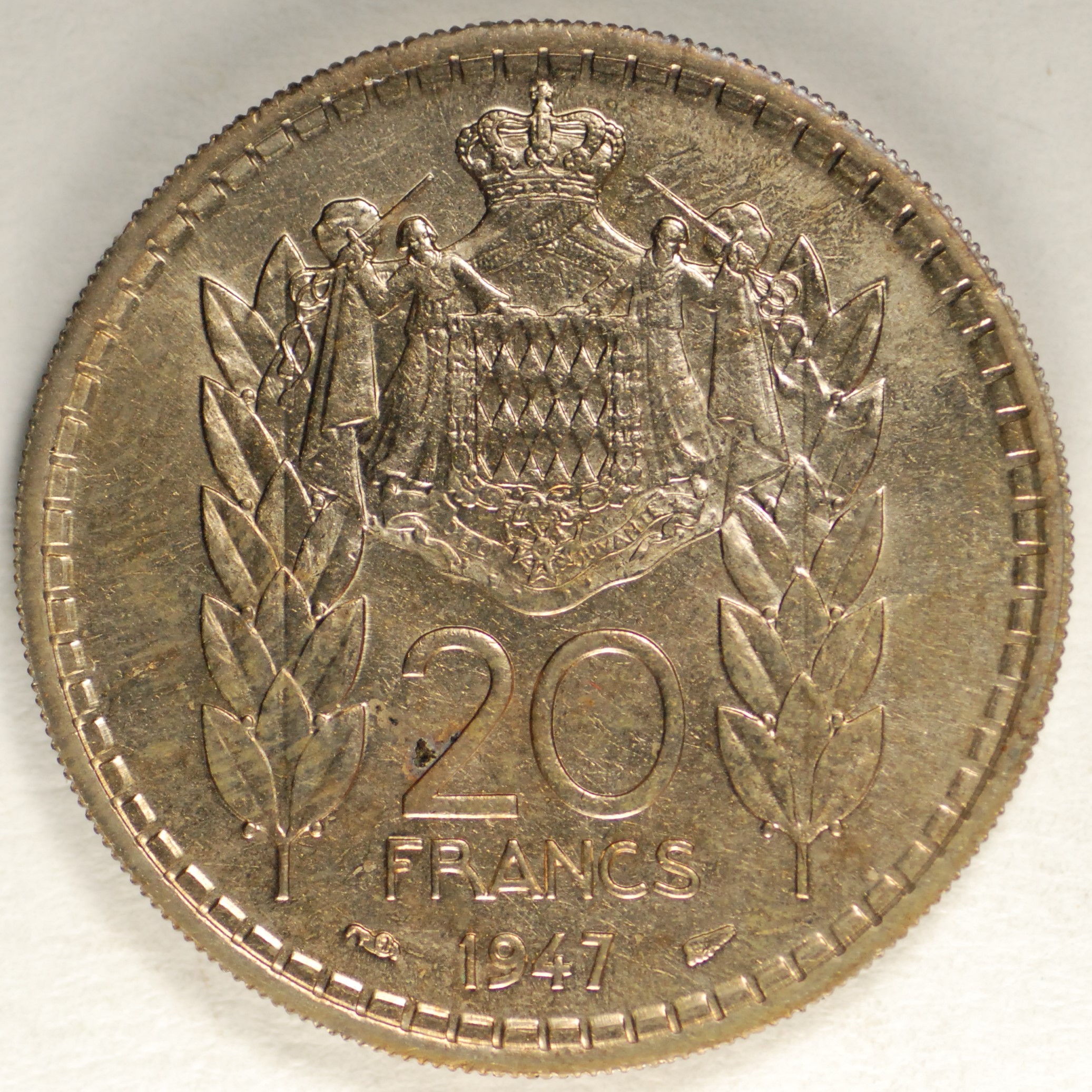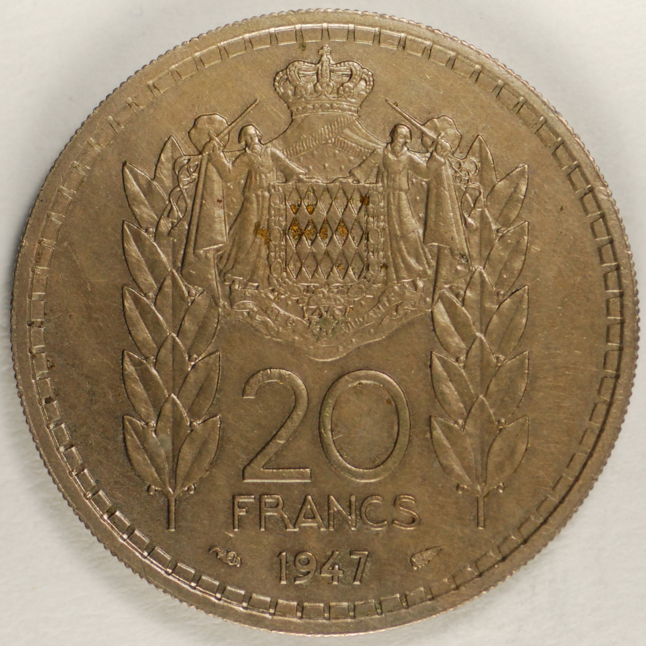 | FC | 6295 | 1947 | MONACO | 20 Francs | Louis II | Copper-Nickel | 124 | Uncirculated | $20.00 | |||||