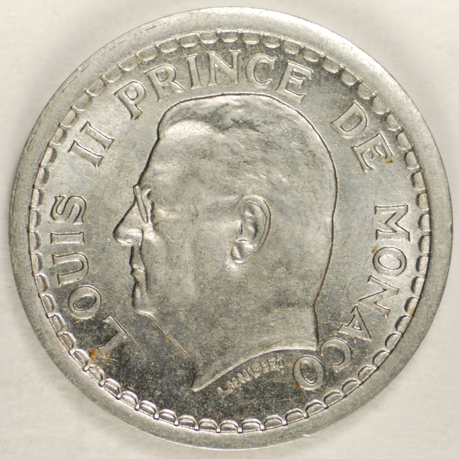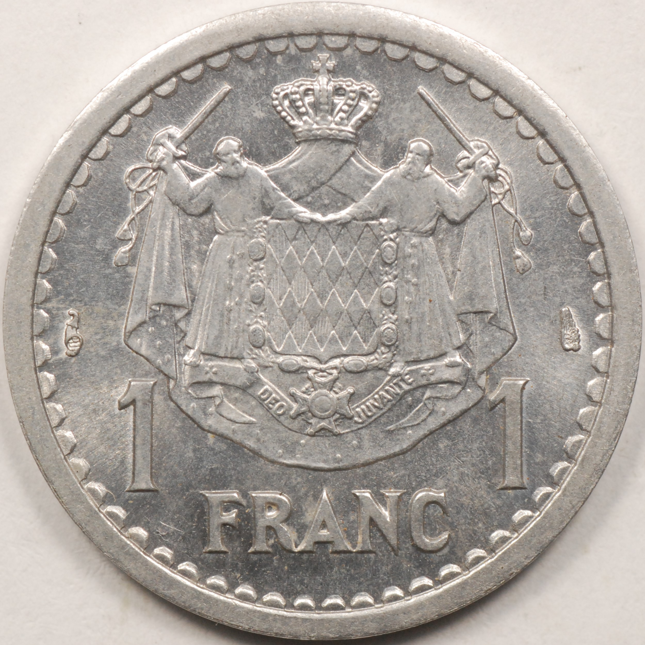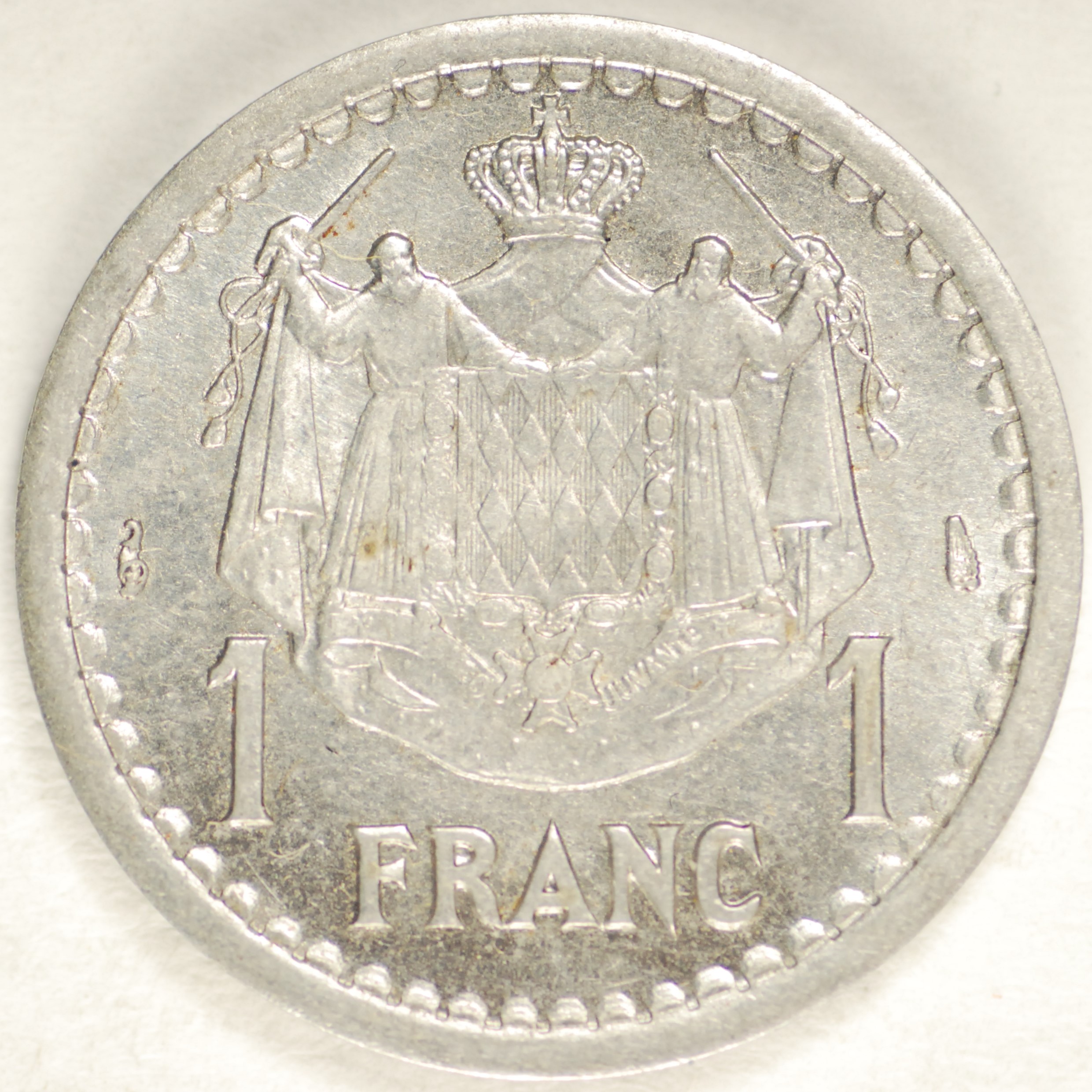 | FC | 23247 | 1945 (ND) | MONACO | 1 Franc | Crowned Mantled Arms | Louis II | Aluminum-Bronze | 120a | Uncirculated | $8.00 | ||||