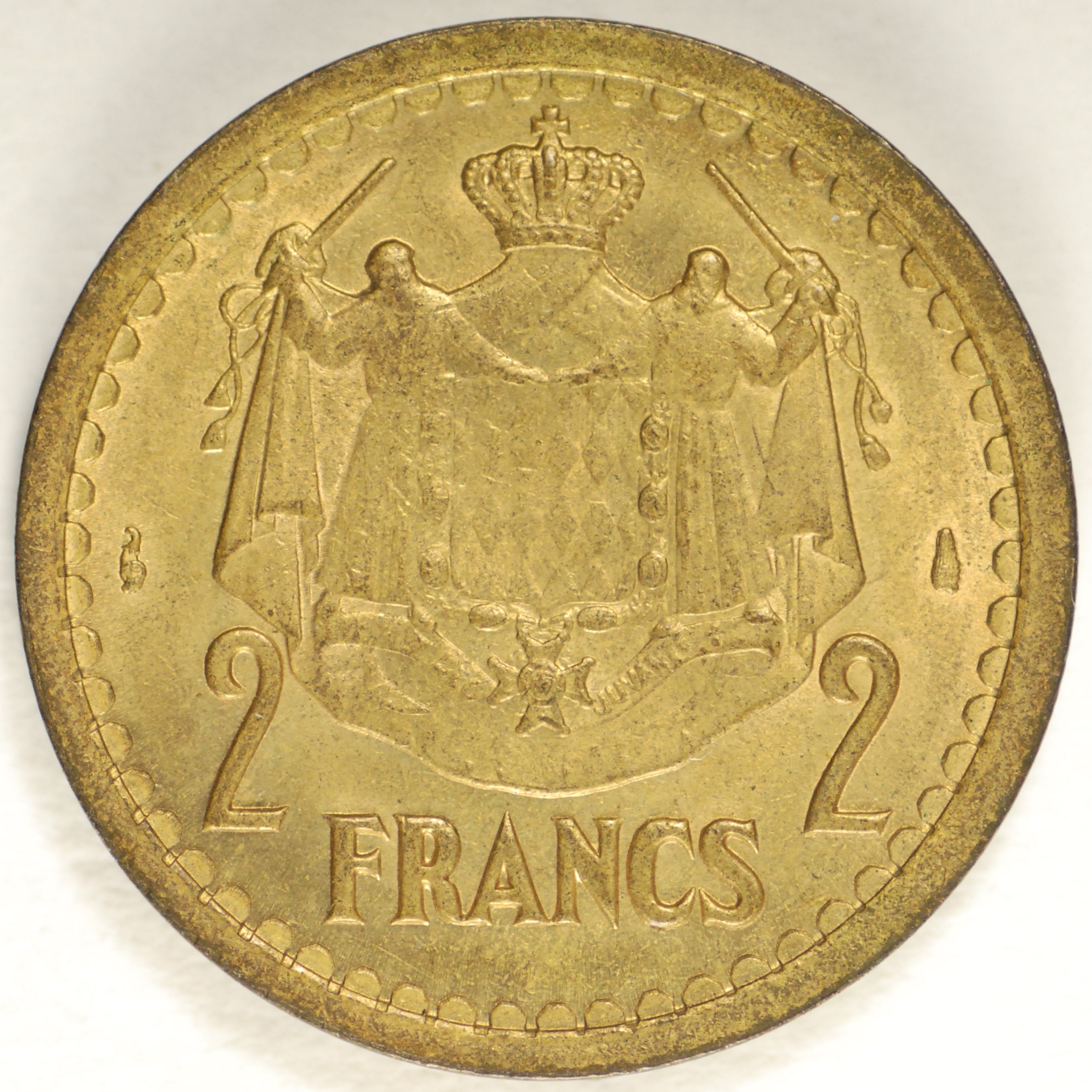 | FC | 24857 | 1945 | MONACO | 2 Francs | Louis II | Aluminum-Bronze | 121a | Uncirculated | $10.00 | |||||