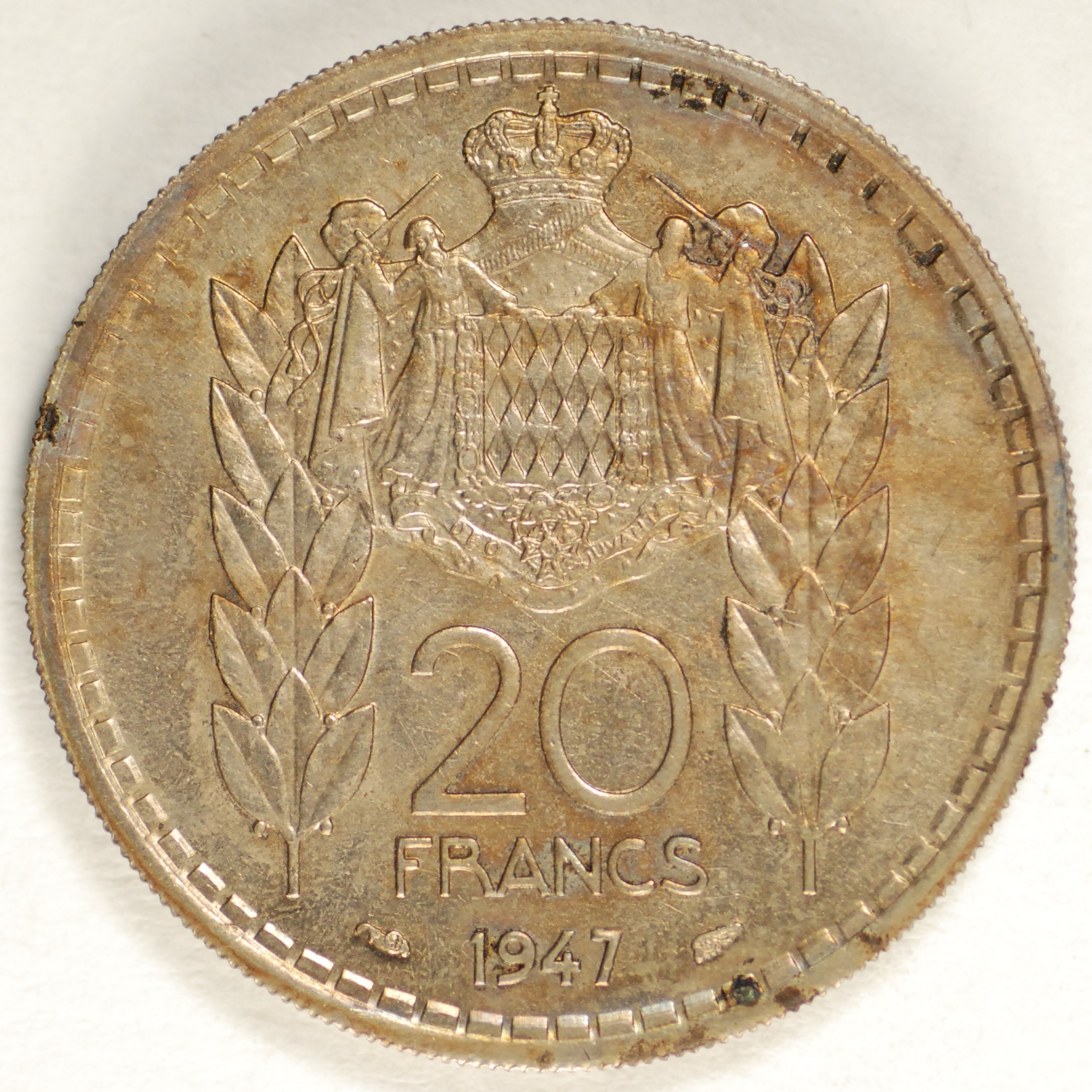 | FC | 6924 | 1947 | MONACO | 20 Francs | Louis II | Copper-Nickel | 124 | Uncirculated | $20.00 | |||||