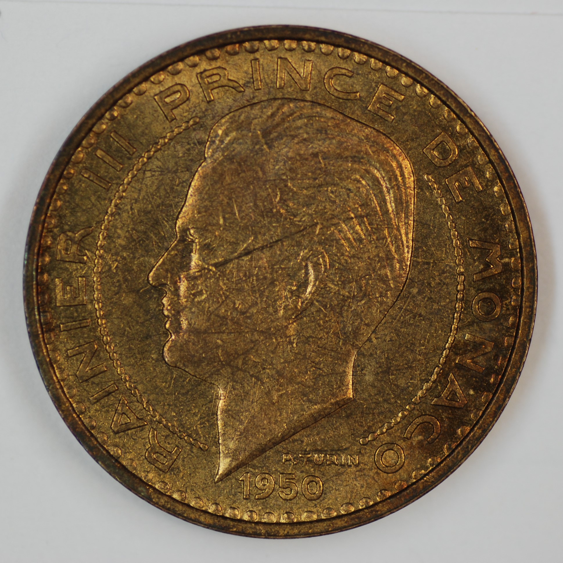 | FC | 25608 | 1950 | MONACO | 20 Francs | Rainier III | Aluminum-Bronze | 131 | About Uncirculated | $4.00 | |||||