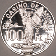 | FC | 30464 | 1977 | MONACO | 100 Francs | Angel | Monte Carlo Casino Token | 0.925 | 0.6100 | Silver | Prooflike | $35.00 | |||