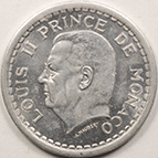 | FC | 50072 | 1945 | MONACO | 1 Franc | Crowned Mantled Arms | Louis II | Aluminum-Bronze | 120a | Uncirculated | $5.00 | ||||