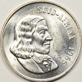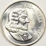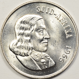 | FC | 33653 | 1966 | SOUTH AFRICA | 1 Rand | Springbok | Jan van Riebeeck | 0.800 | 0.3858 | Silver | 71.1 | Bril. Uncirculated | $17.50 | ||
