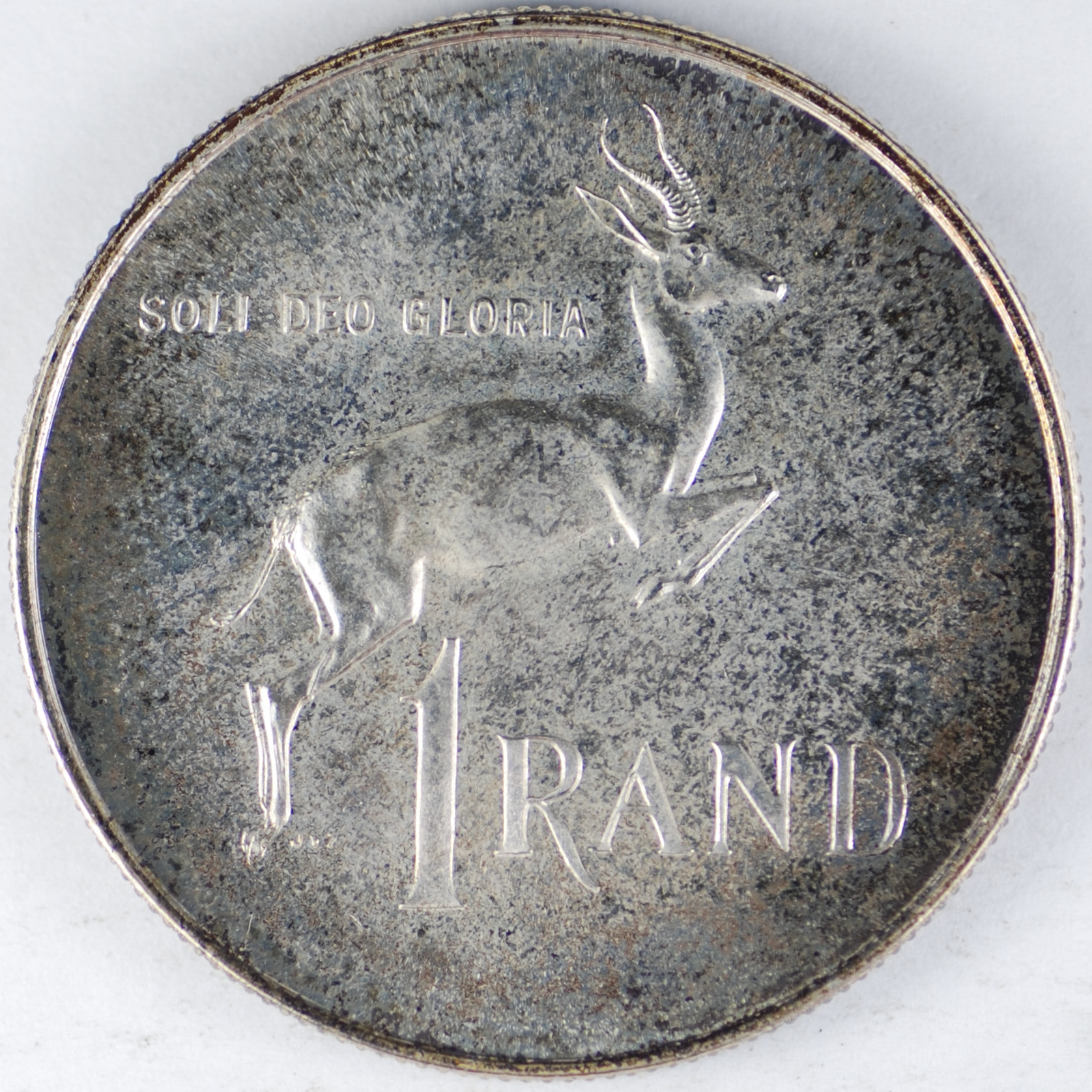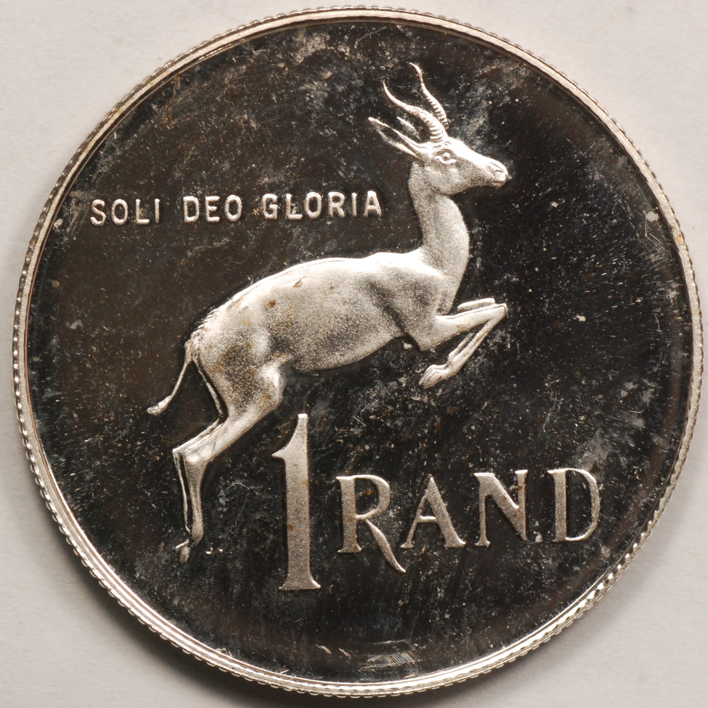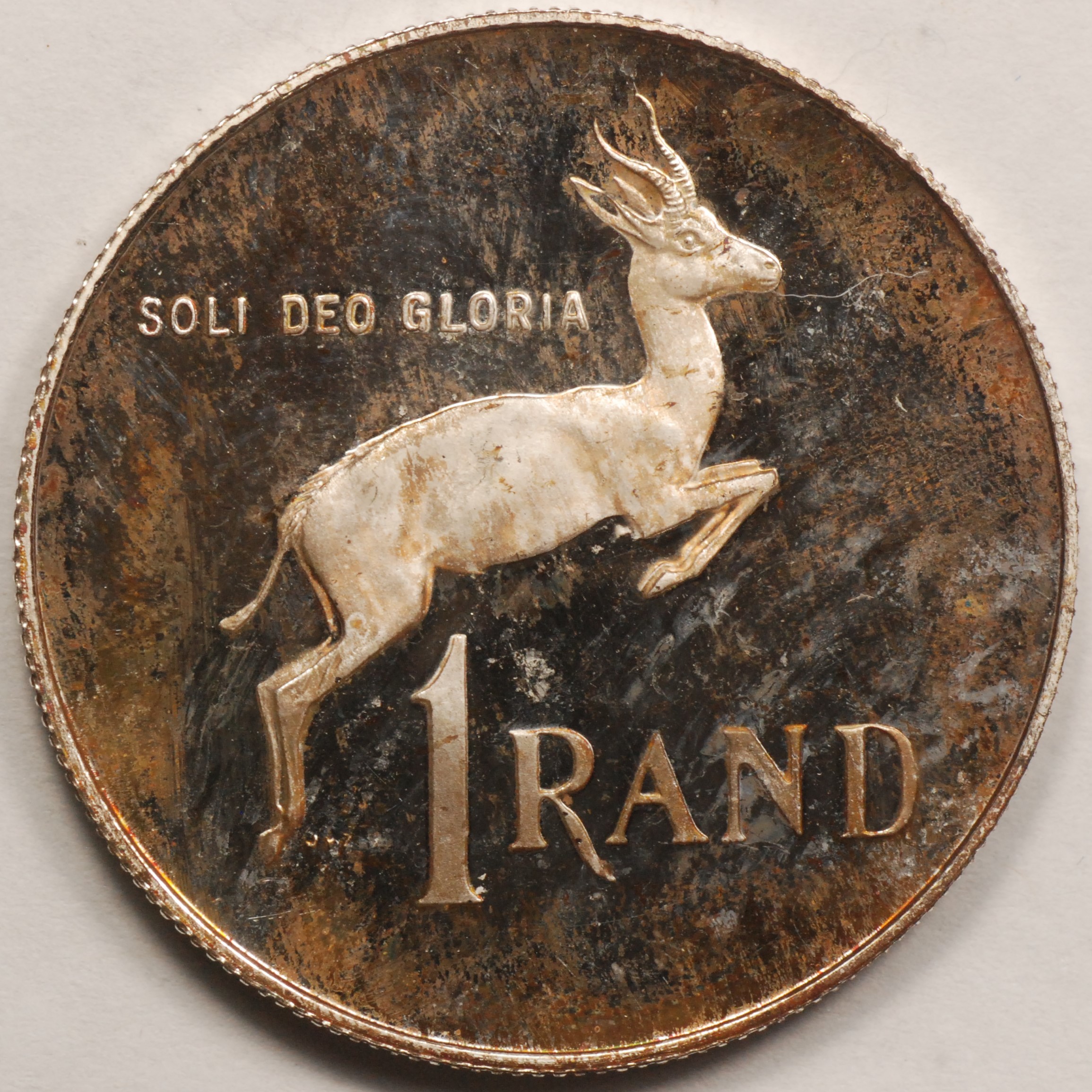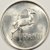 | FC | 33673 | 1967 | SOUTH AFRICA | 1 Rand | Springbok | Dr. Verwoerd | 0.800 | 0.3858 | Silver | 72.2 | Bril. Uncirculated | $19.00 | ||