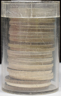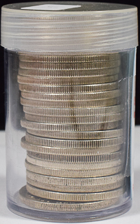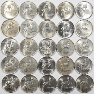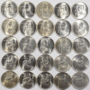 | FC | 33689 | 1967-1969 | SOUTH AFRICA | 1 Rand | Springbok | Tube of 25 Coins | 0.800 | 9.6475 | Silver | Mixed | About Uncirculated to Bril. Uncirculated | $325.00 | ||