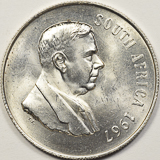 | FC | 33671 | 1967 | SOUTH AFRICA | 1 Rand | Springbok | Dr. Verwoerd | 0.800 | 0.3858 | Silver | 72.2 | Bril. Uncirculated | $19.00 | ||