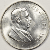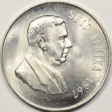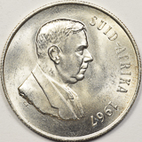 | FC | 33672 | 1967 | SOUTH AFRICA | 1 Rand | Springbok | Dr. Verwoerd | 0.800 | 0.3858 | Silver | 72.2 | Bril. Uncirculated | $19.00 | ||