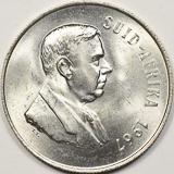 | FC | 33665 | 1967 | SOUTH AFRICA | 1 Rand | Springbok | Dr. Verwoerd | 0.800 | 0.3858 | Silver | 72.2 | Bril. Uncirculated | $19.00 | ||
