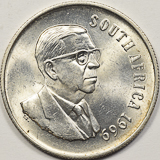 | FC | 17684 | 1969 | SOUTH AFRICA | 1 Rand | Shield | Dr. T.E. Donges | 0.800 | 0.3858 | Silver | 80.1 | Bril. Uncirculated | $19.00 | ||