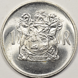 | FC | 33649 | 1966 | SOUTH AFRICA | 1 Rand | Springbok | Jan van Riebeeck | 0.800 | 0.3858 | Silver | 71.1 | Bril. Uncirculated | $17.50 | ||