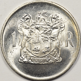 | FC | 33661 | 1967 | SOUTH AFRICA | 1 Rand | Springbok | Dr. Verwoerd | 0.800 | 0.3858 | Silver | 72.2 | Bril. Uncirculated | $19.00 | ||