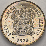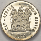 | FC | 33686 | 1973 | SOUTH AFRICA | 1 Rand | Springbok | National Arms | 0.800 | 0.3858 | Silver | 88 | Proof | $20.00 | ||