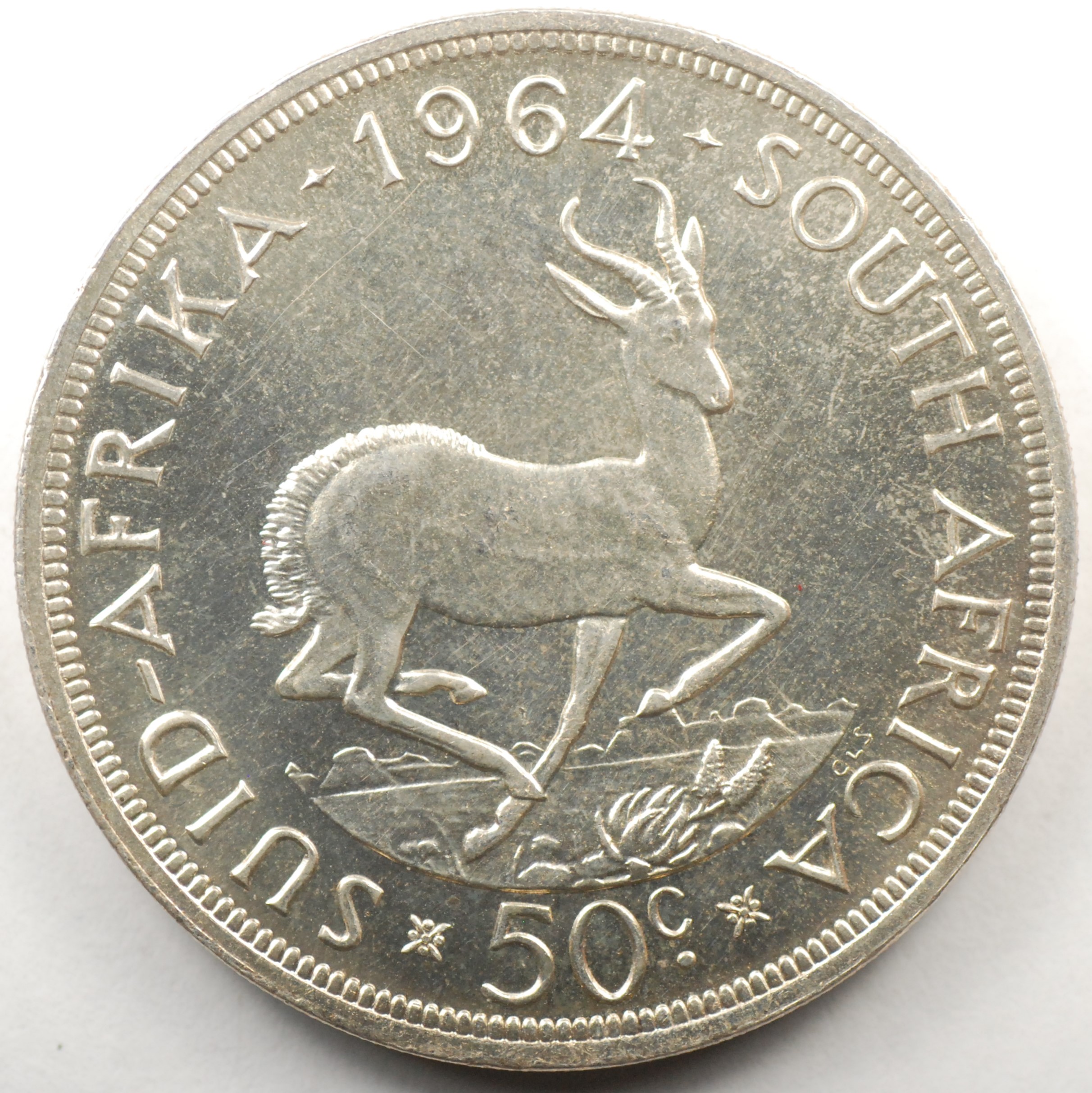 | FC | 9552 | 1964 | SOUTH AFRICA | 50 Cents | Springbok | 0.500 | 0.4546 | Silver | 62 | Bril. Uncirculated | $26.00 | |||