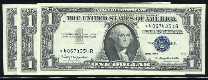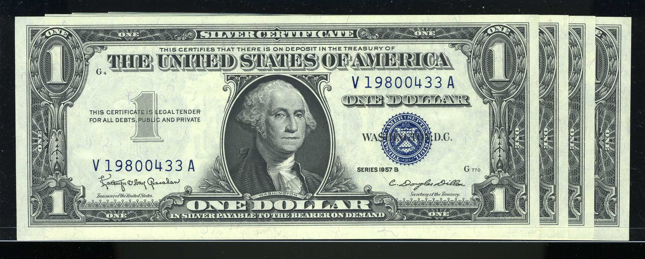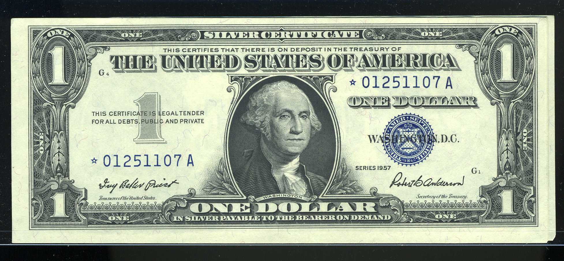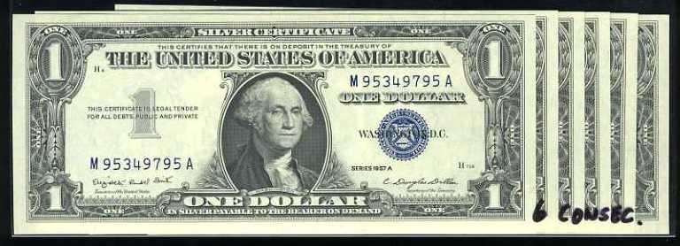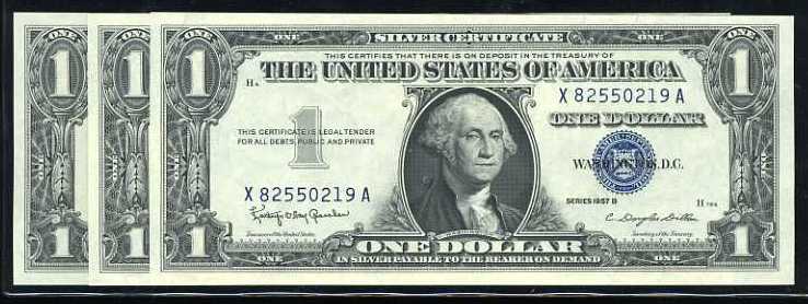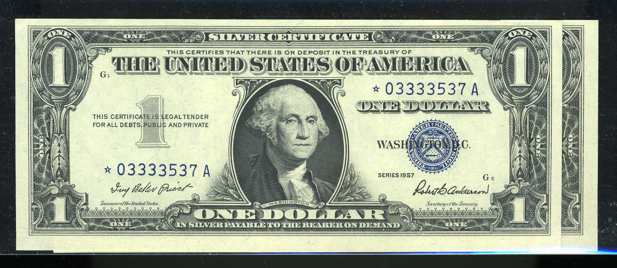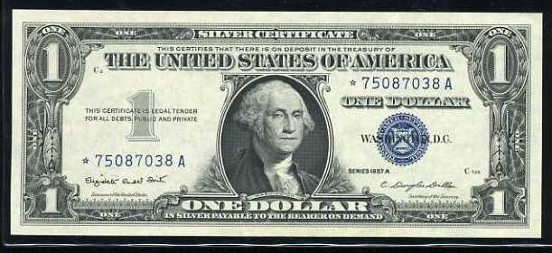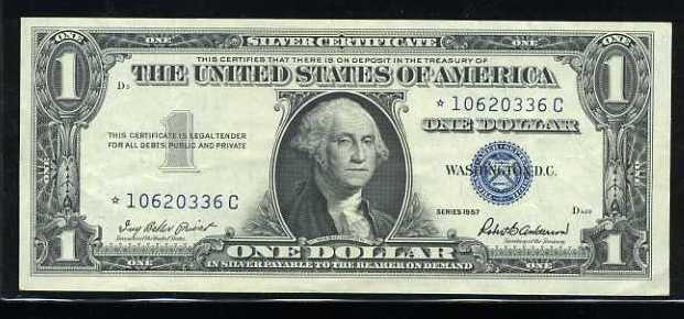 SILVER CERTIFICATES$1.00 SMALL SIZE, 1957 SERIES