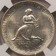 | 88614 H S | 1936 | Commemorative Half Dollar - Cincinnati Music Center | NGC Certificate 4631026-019 Photograph listed with certificate BOEMEX1020AO |