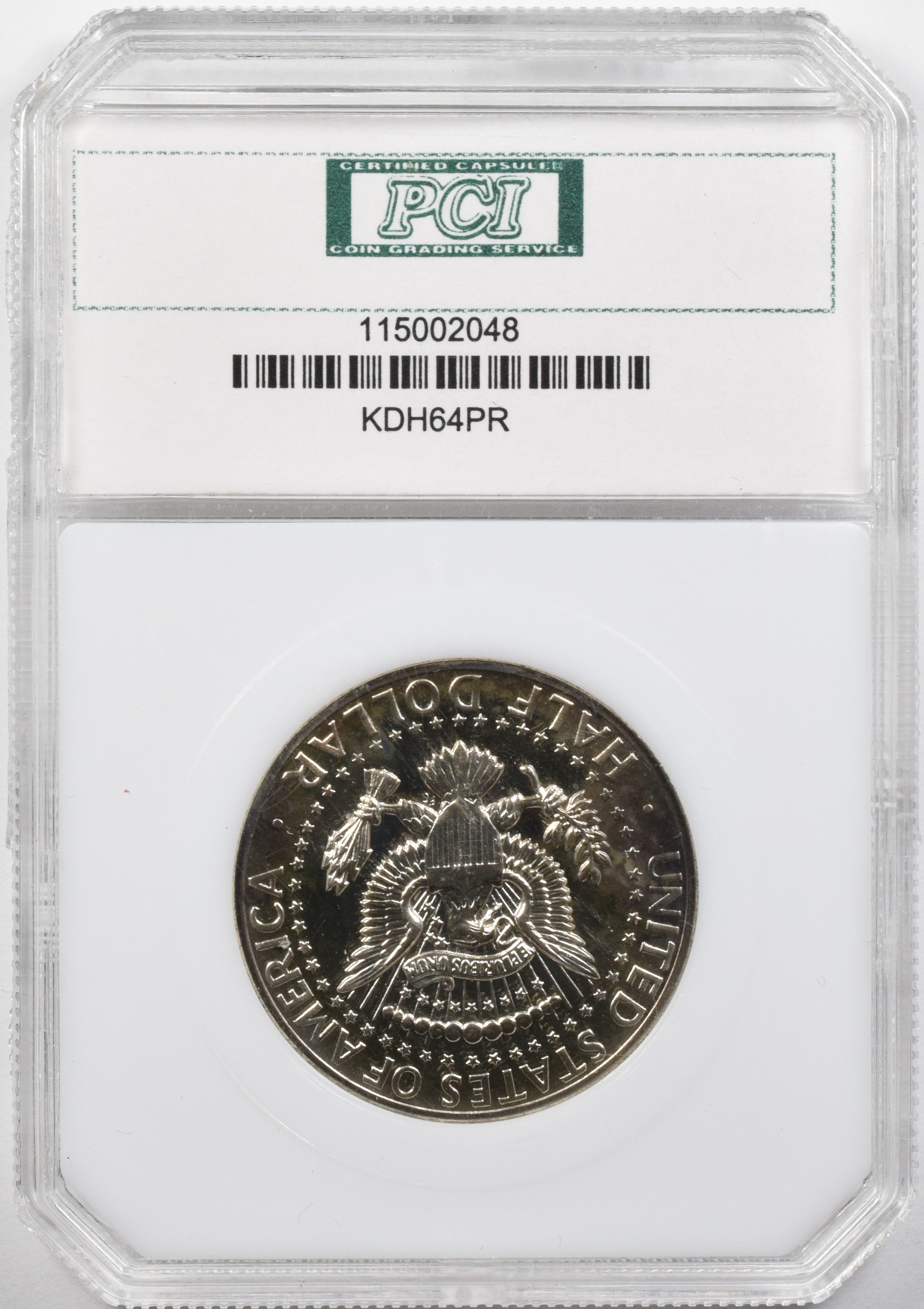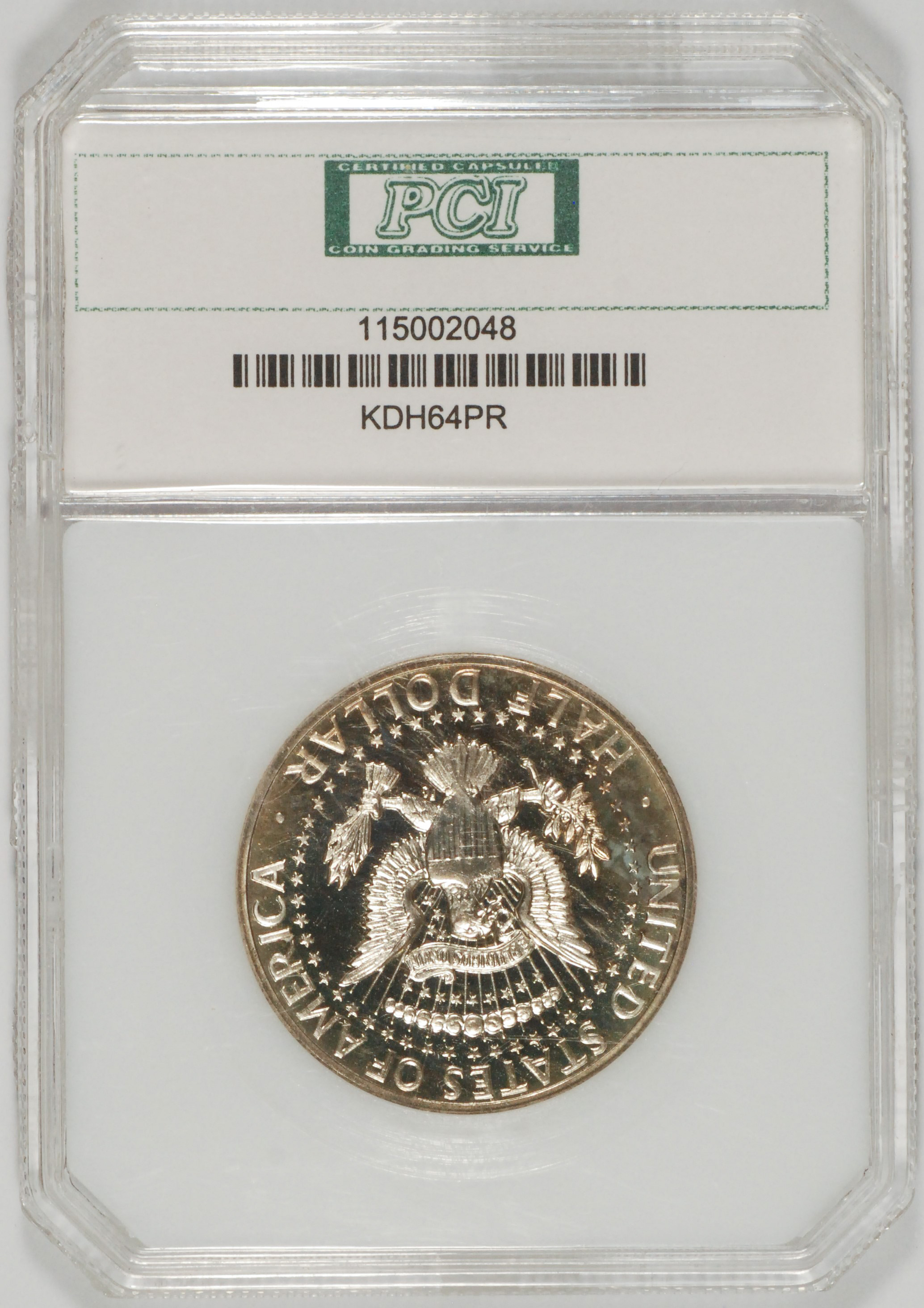 | 115002048 H R | 1964 | Kennedy Half Dollar | "Cameo" PCI Certificate 115002048 |