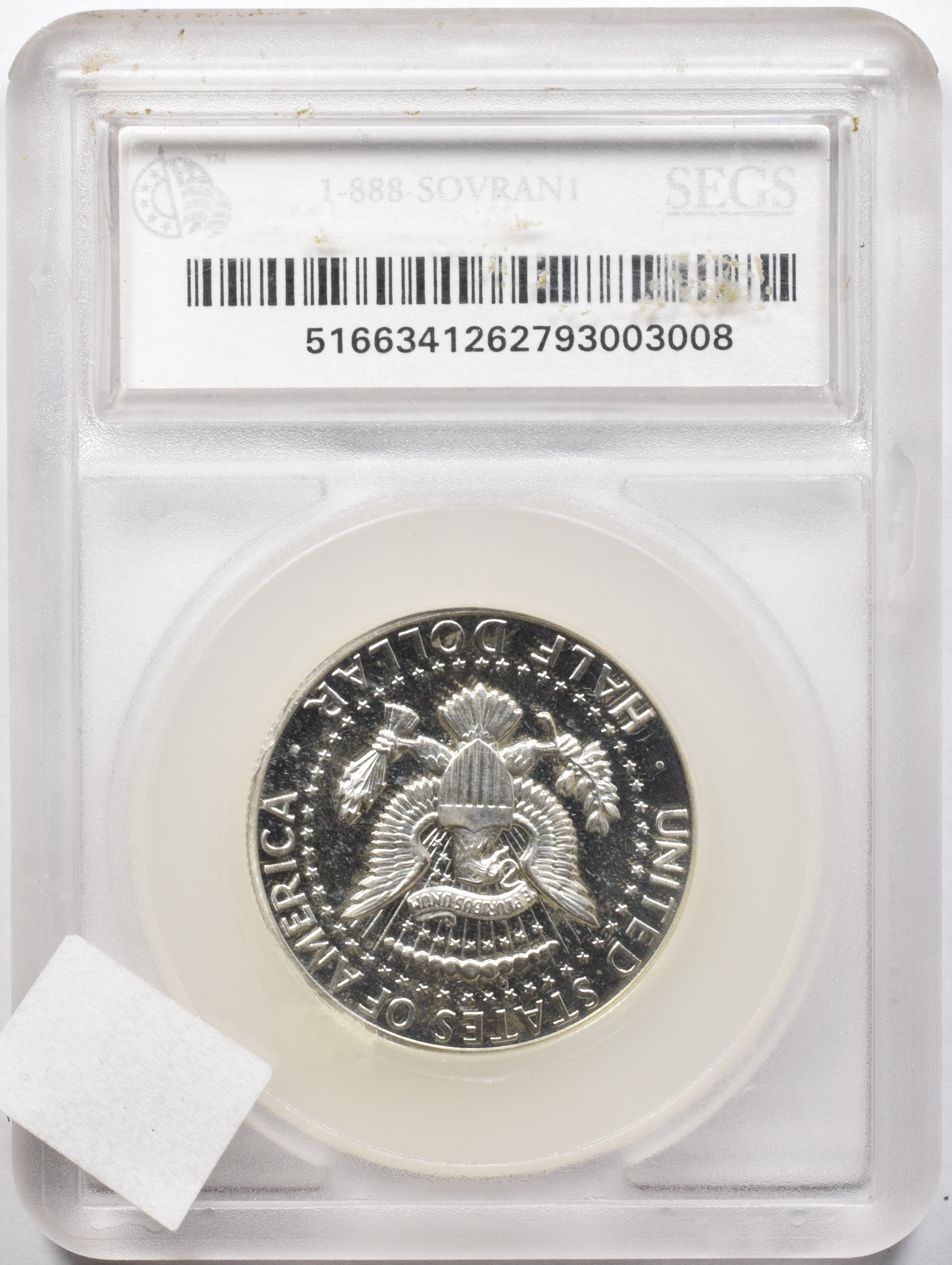 | 2793003008 H R | 1964 | Kennedy Half Dollar | Cameo Minor Doubled Die Obverse & Minor Doubled Die Reverse SEGS Certificate 5166341262793003008 |