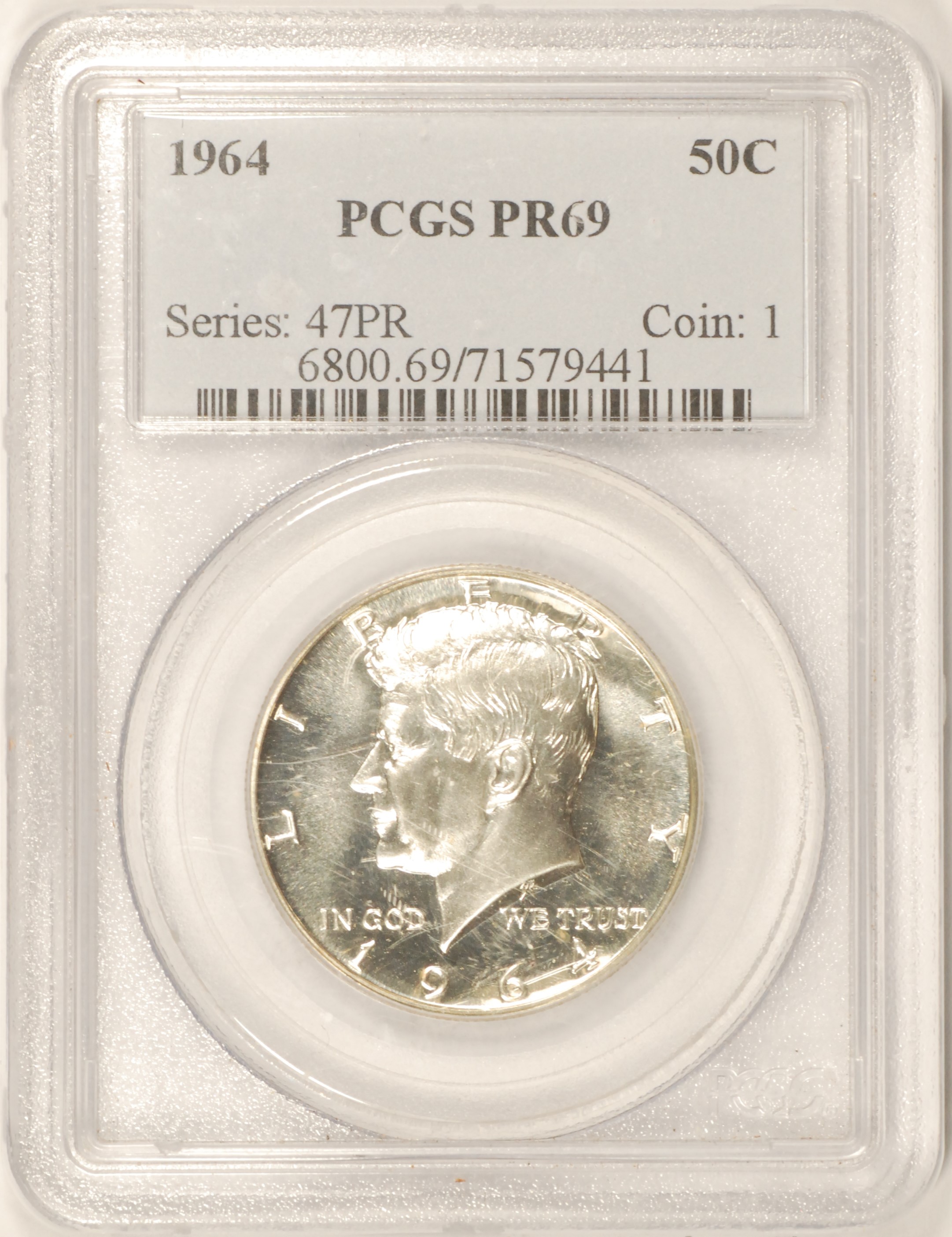 | 71579441 H C | 1964 | Kennedy Half Dollar | PCGS Certificate 71579441 | PROOF-69 | $130.00 | ||