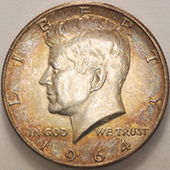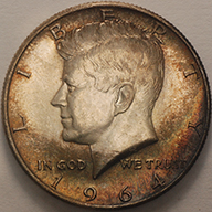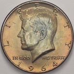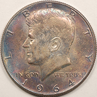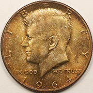 1964 | Kennedy Half Dollar | Rainbow Toning | MS-65 RT | $30.00 | ||