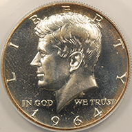 1964 | Kennedy Half Dollar | Accented Hair | PROOF-66 | $130.00 | ||