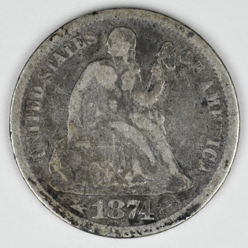 | 82643 R | 1874 | Seated Liberty Dime | Fine | $30.00 | |||