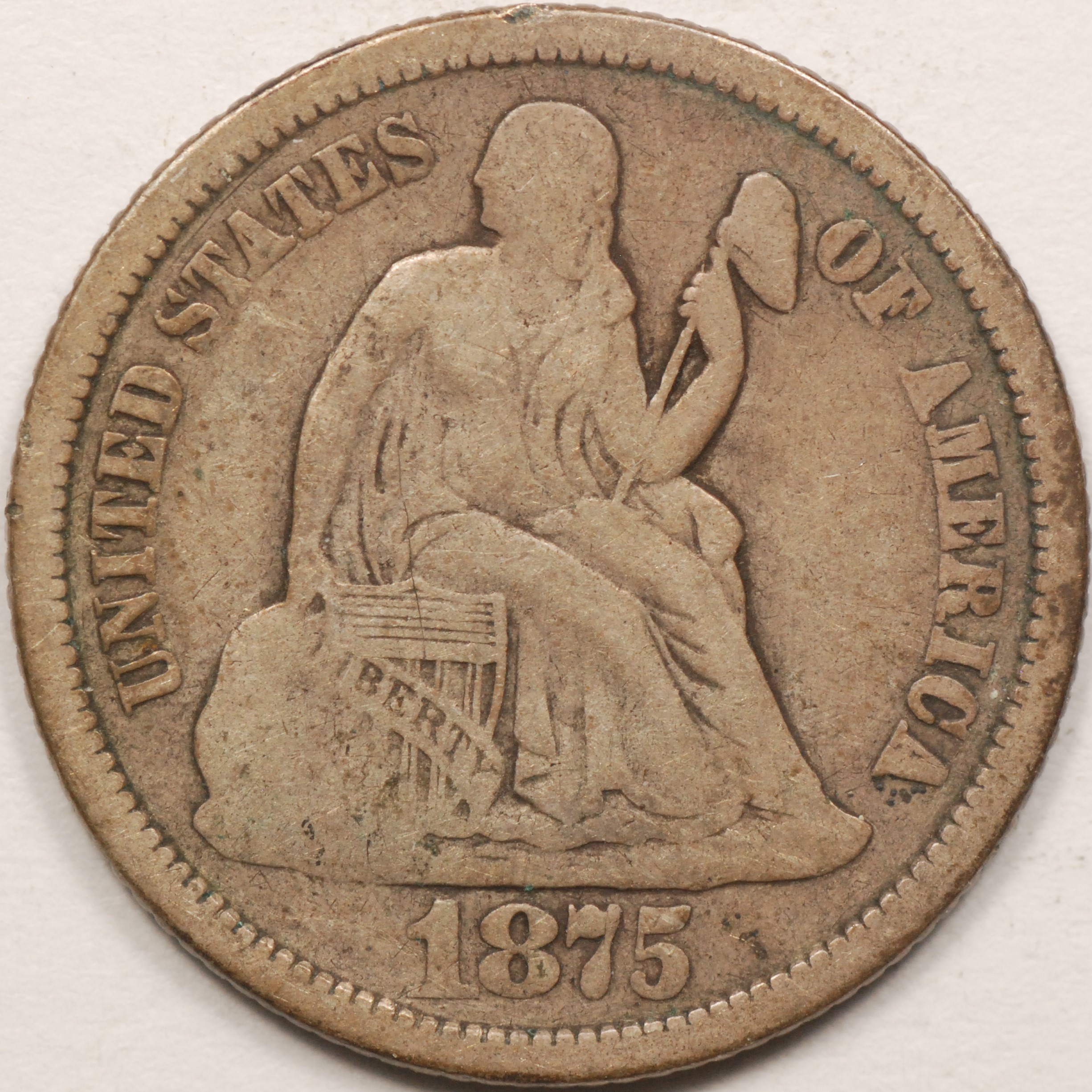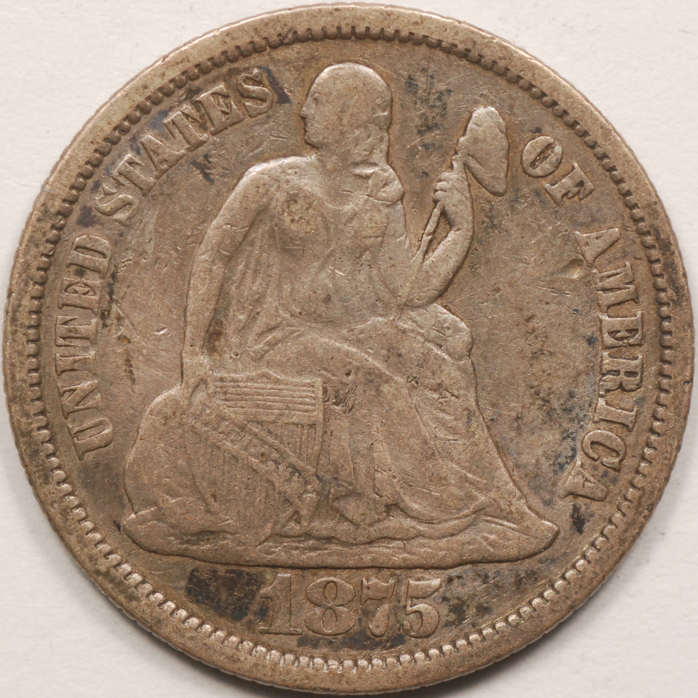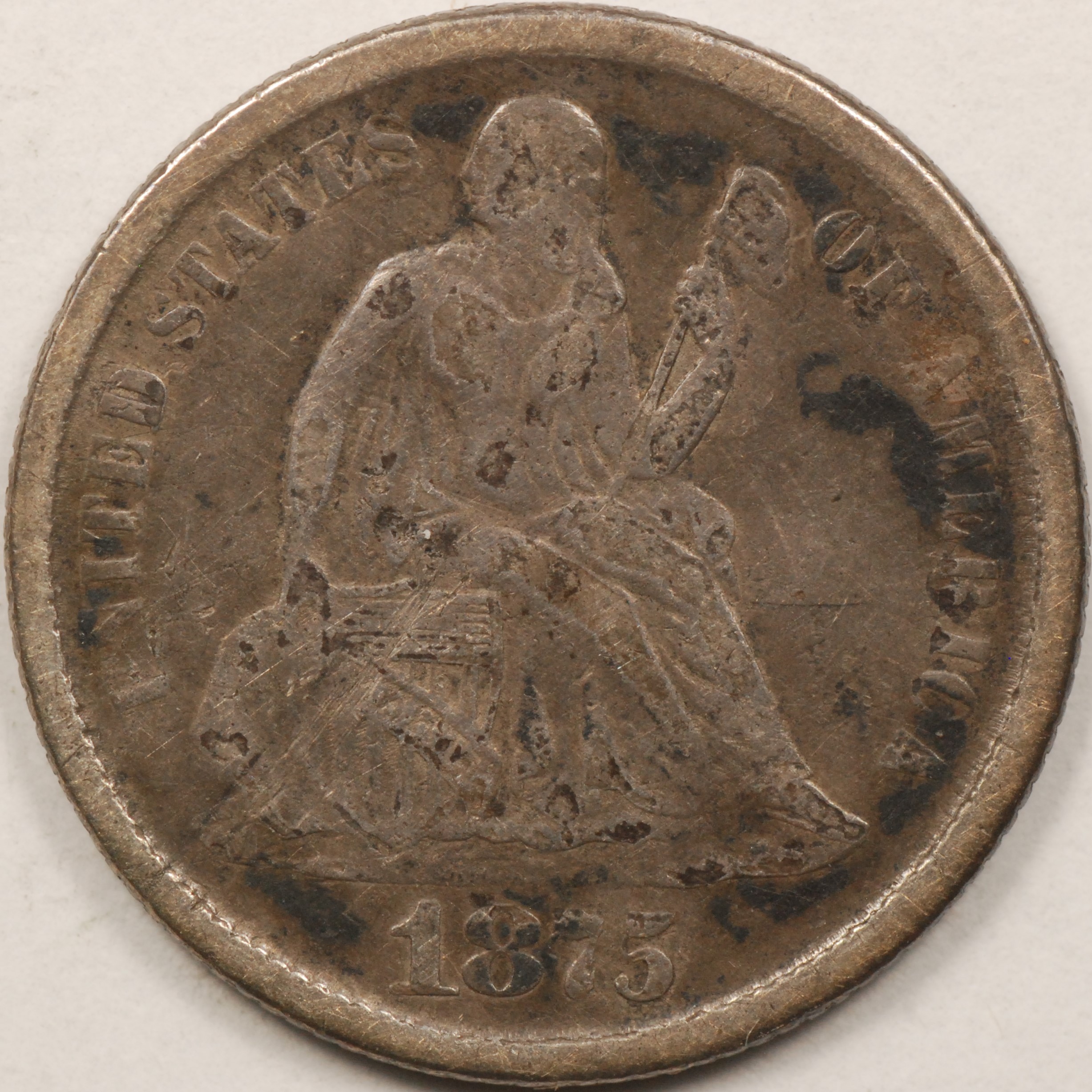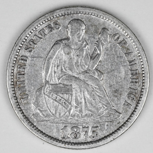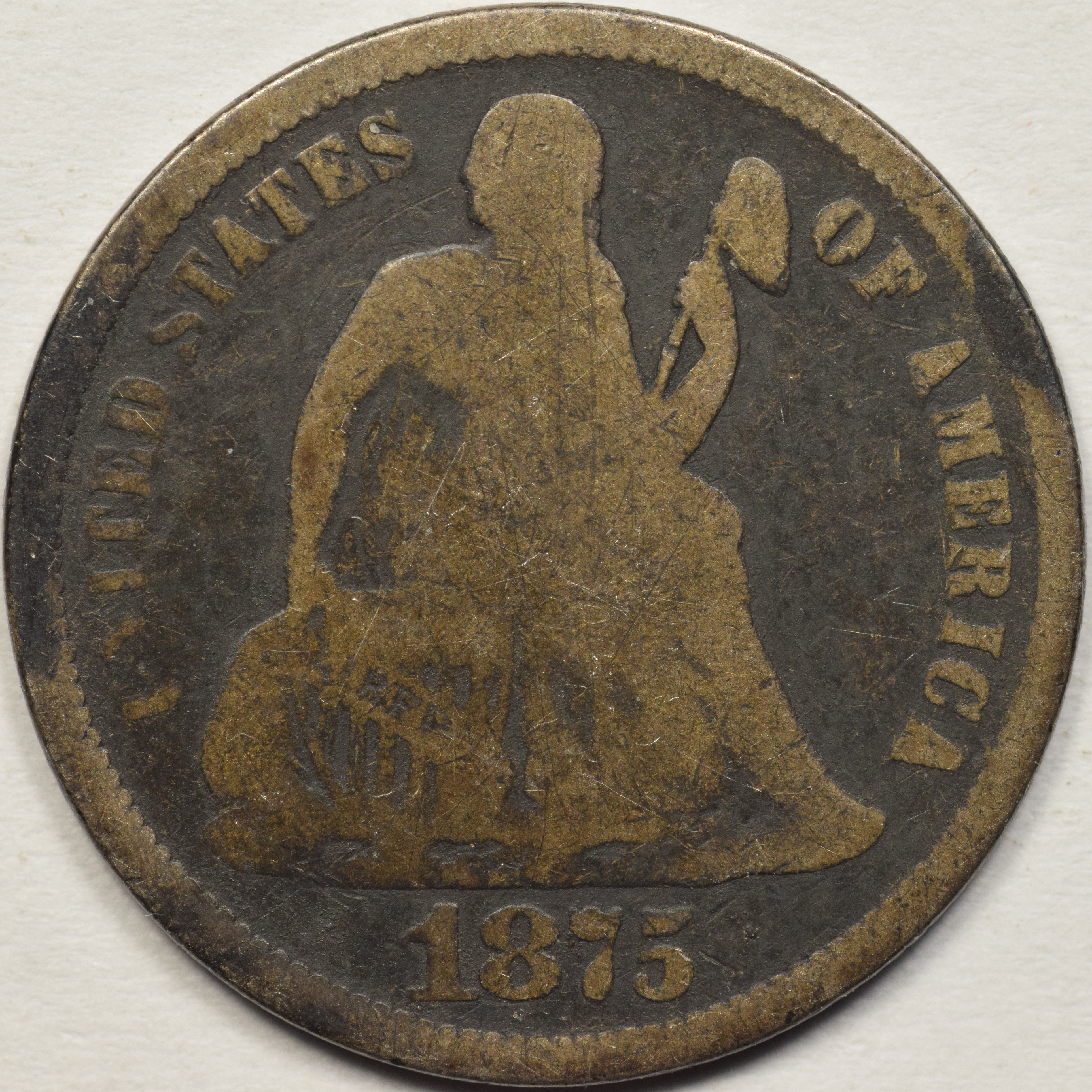 96750 R | 1875 | Seated Liberty Dime | Arrows Removed | Fine | $19.00 |