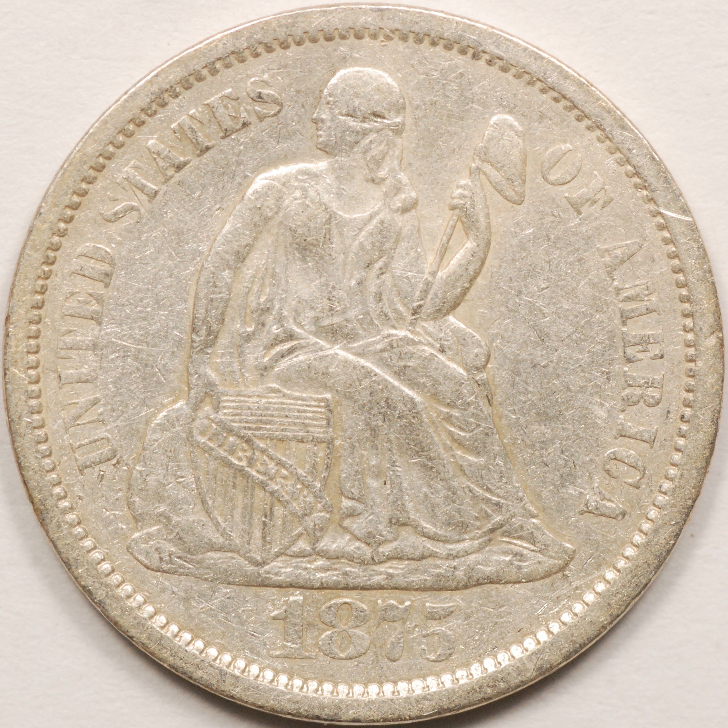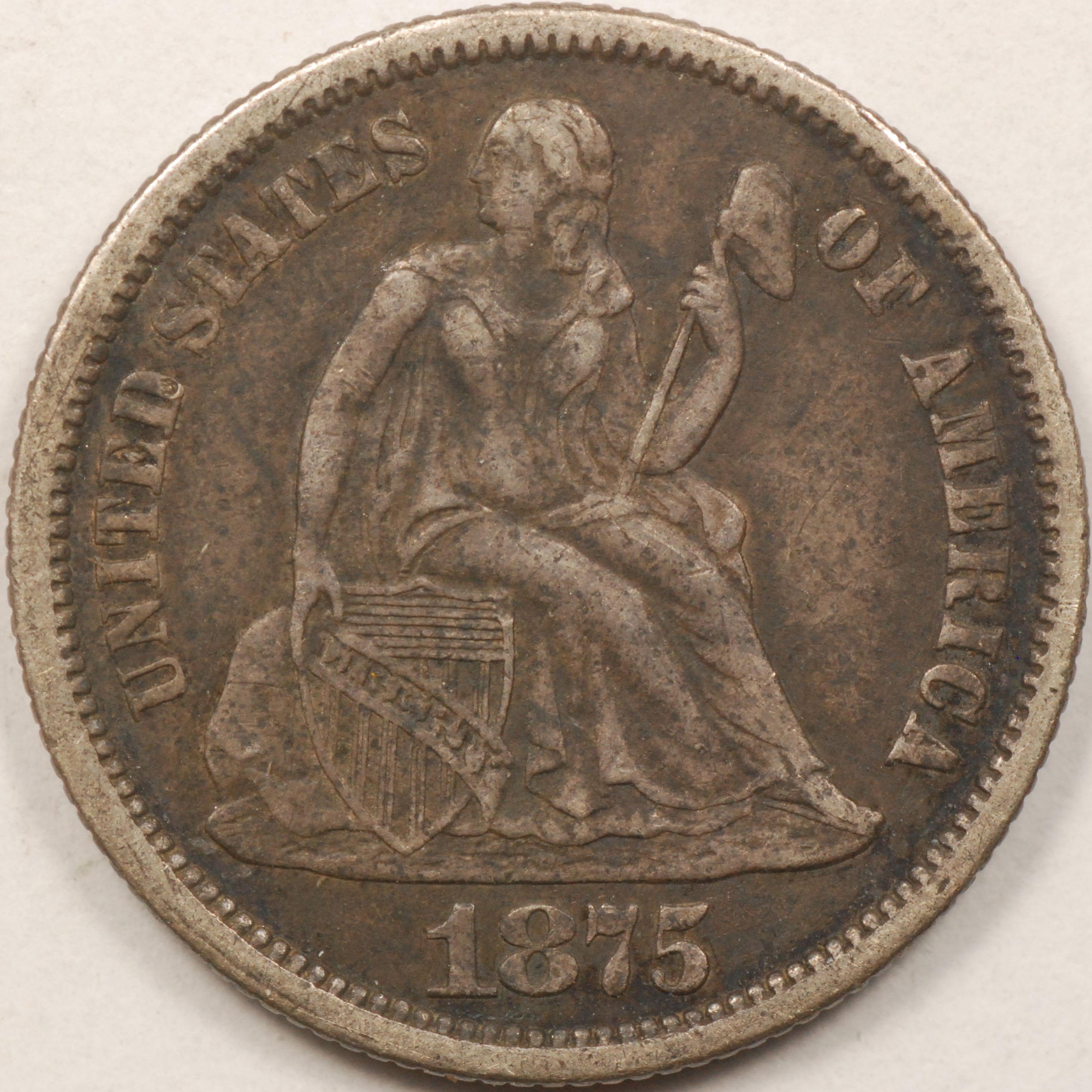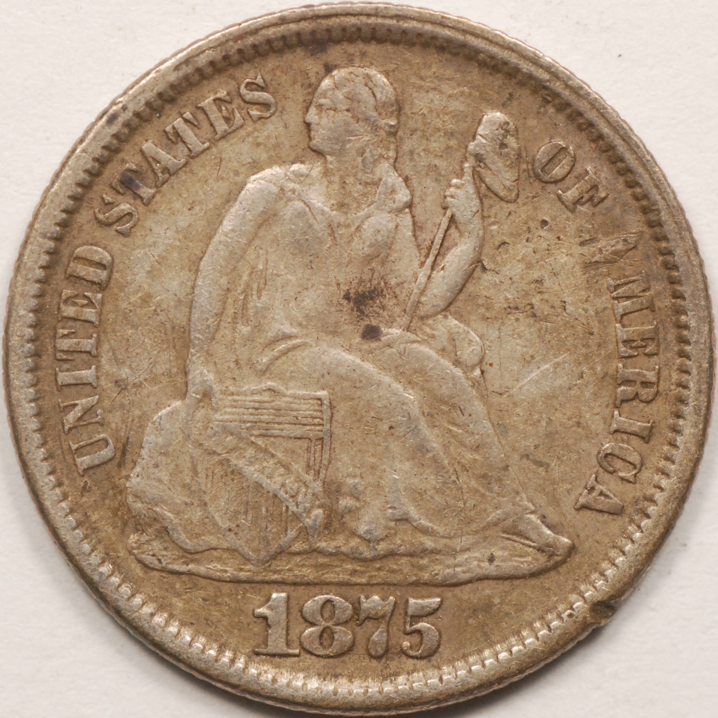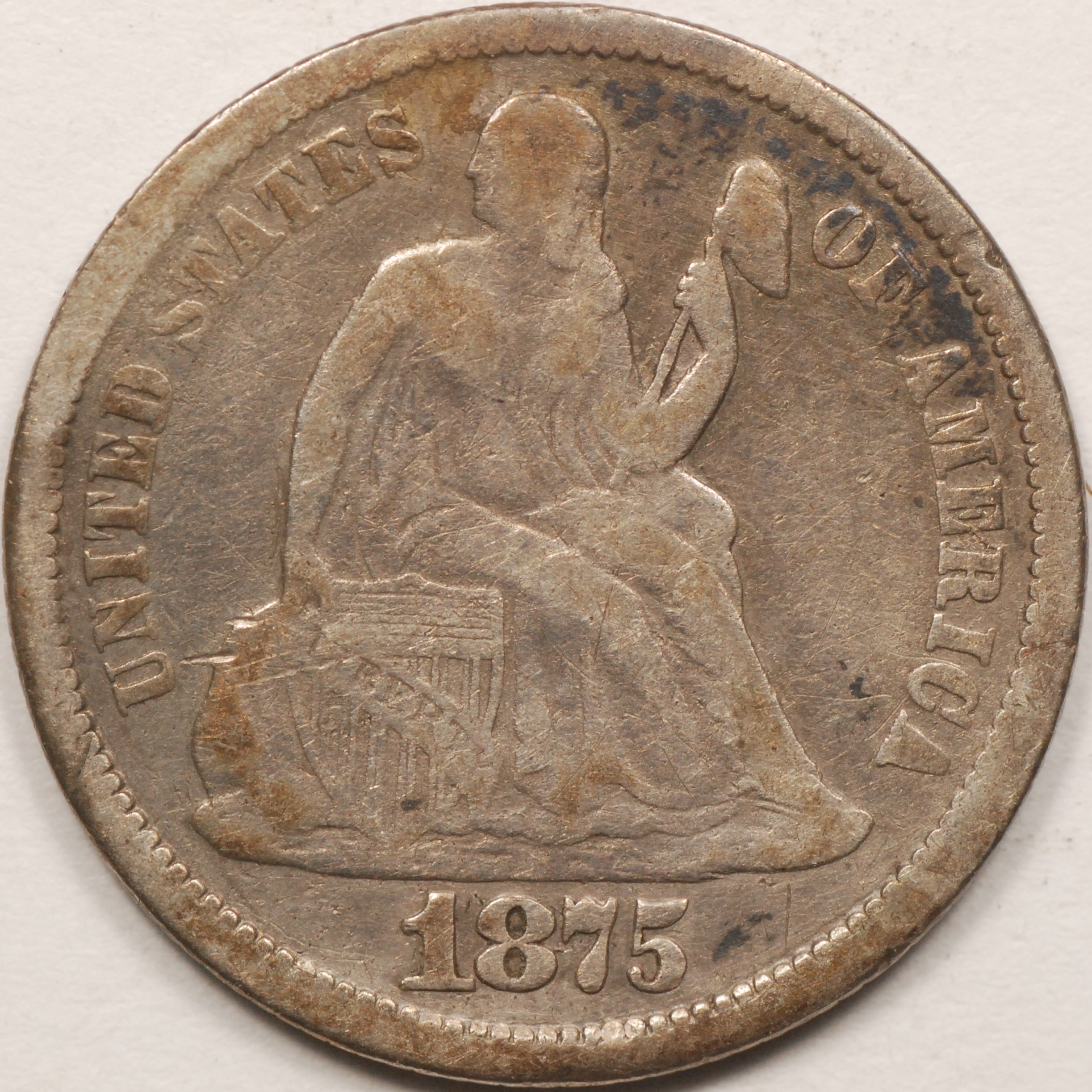 96750 R | 1875 | Seated Liberty Dime | Arrows Removed | Fine | $19.00 |